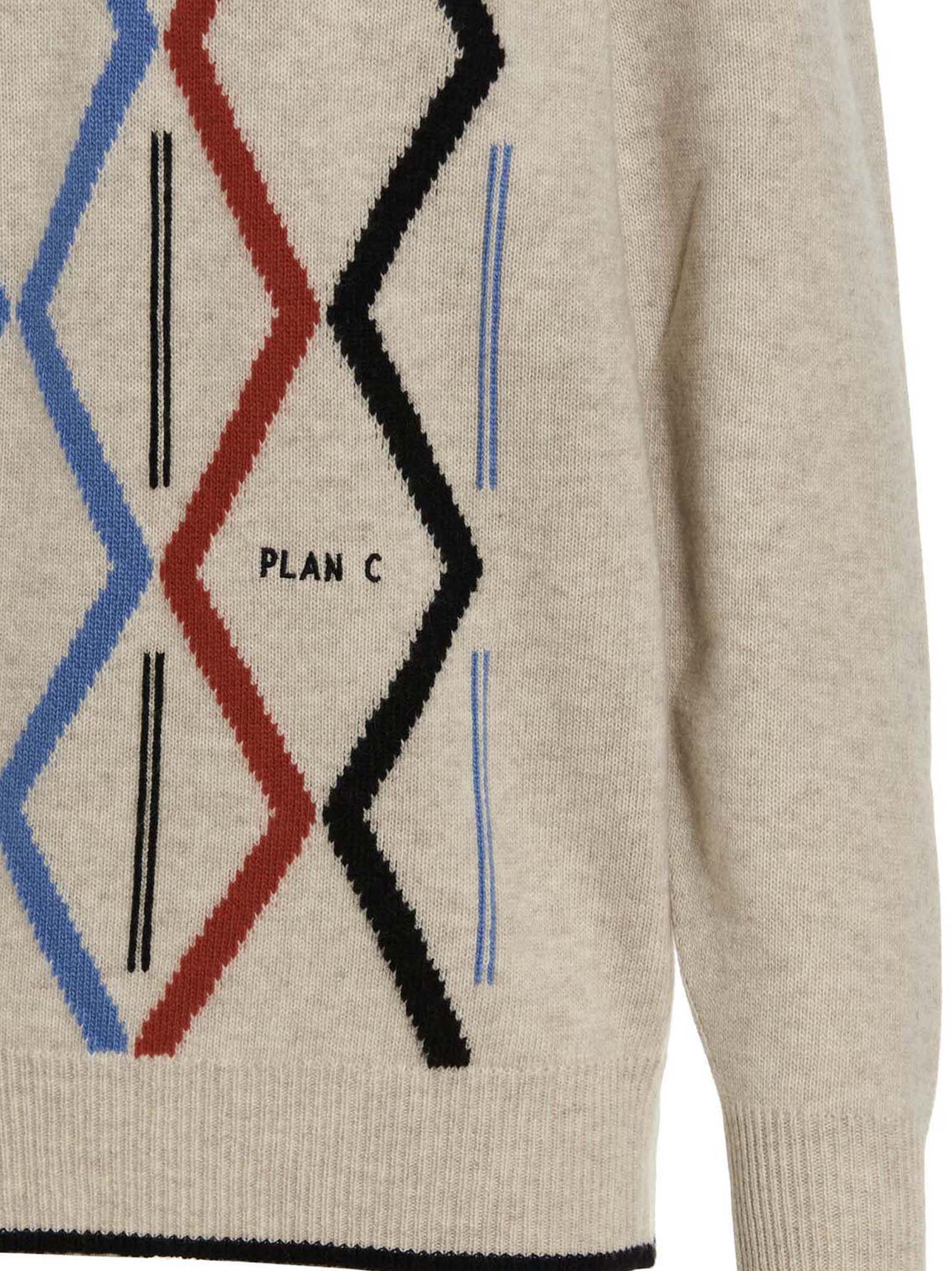 Wool and cashmere blend sweater with front jacquard pattern, V-neck, long cuffed sleeves.