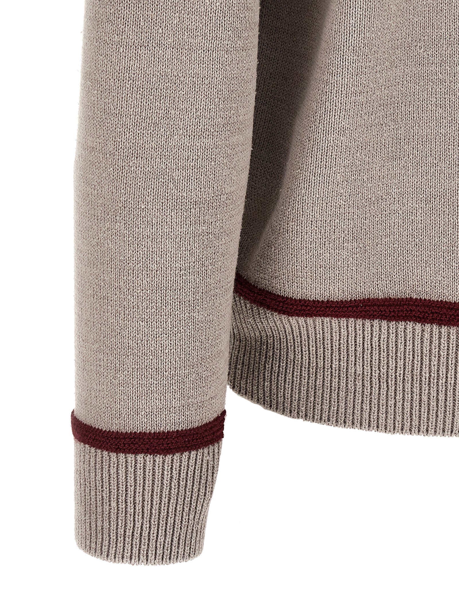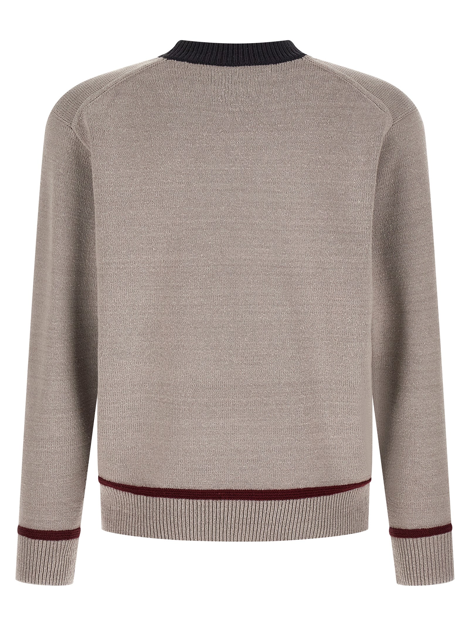 Silk, wool and cotton blend sweater with front jacquard design, crew neck, long cuffed sleeves, and band on the hem.