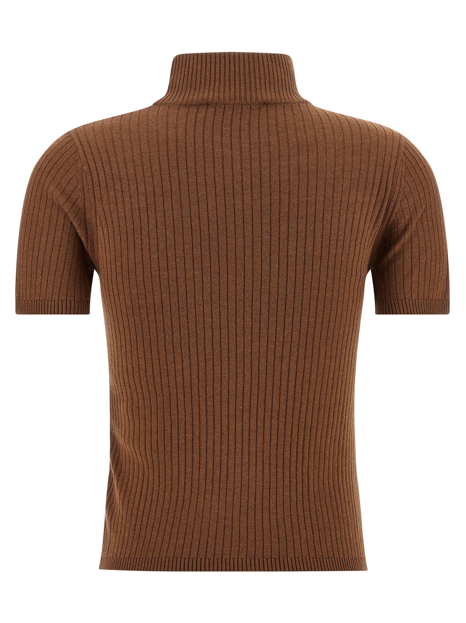 ‘Janagy’ ribbed wool and silk blend sweater, high neck and short sleeves.