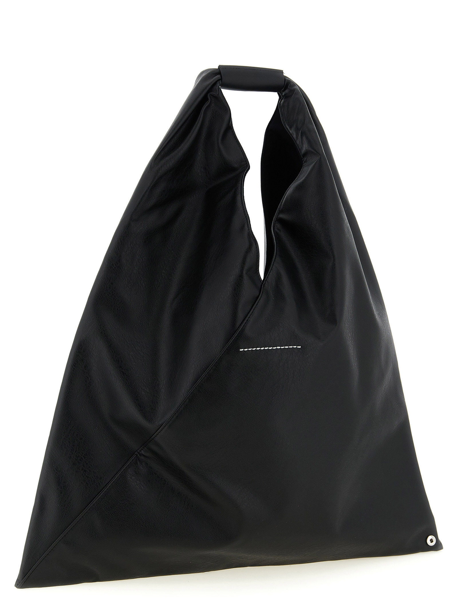‘Japanese Classic’ handbag in leather-effect fabric with origami-inspired triangle pleats with snap buttons, fixed handle with embossed ‘Numeric signature MM6’, back ‘White Stitch Line’.