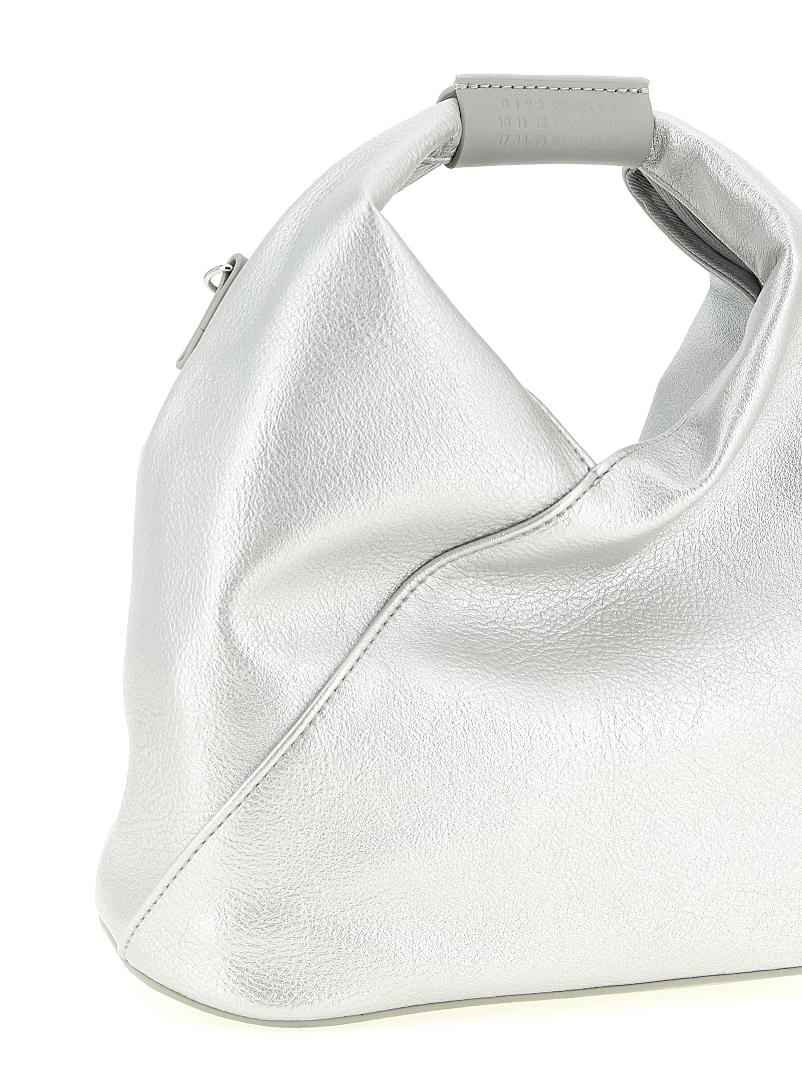 ‘Japanese Mesh’ hammered fine leather crossbody bag, fixed handle with embossed ‘Numeric signature MM6’, internal snap button closure, back ‘White stitch line’, adjustable and removable shoulder strap.