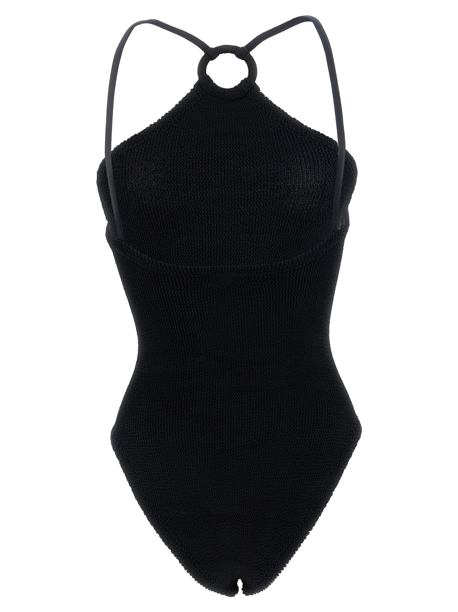 ‘Jasmine’ one-piece swimsuit in Original Crinkle™, American-style neckline, thin straps crossed in a ring detail in front color, medium breast support, classic cover briefs.