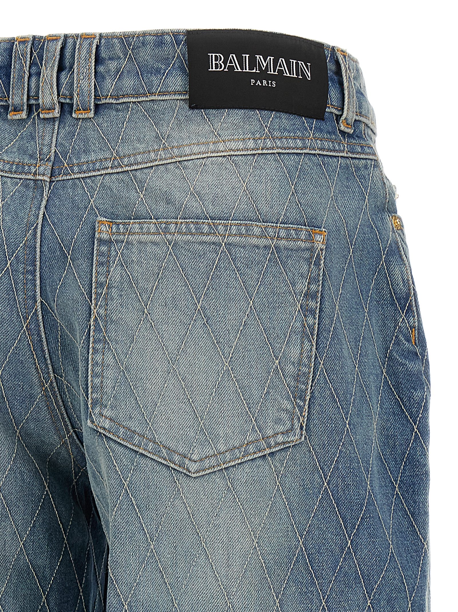 Quilted cotton denim jeans with used-effect wash, straight leg, zip and button closure, pockets.