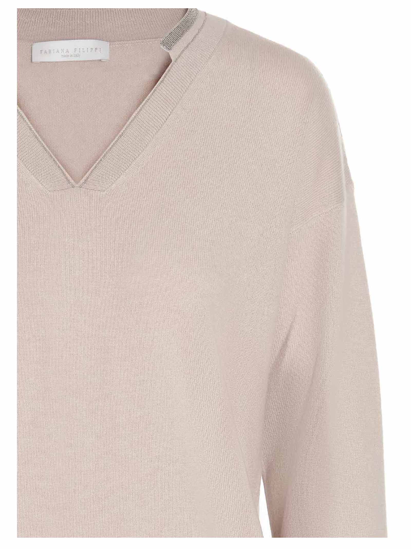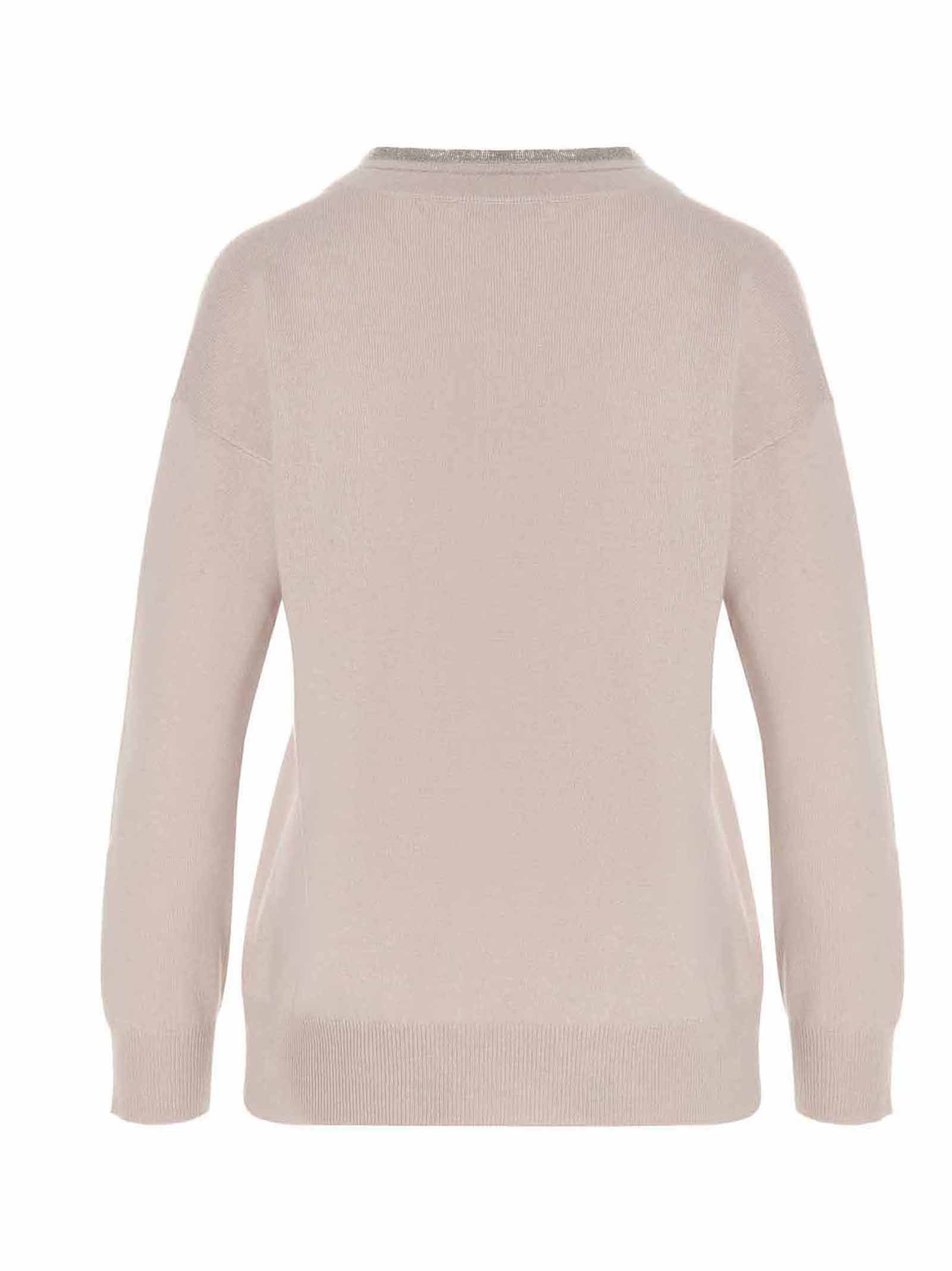 Cashmere and wool blend sweater with a V-neck and jewel applications.
