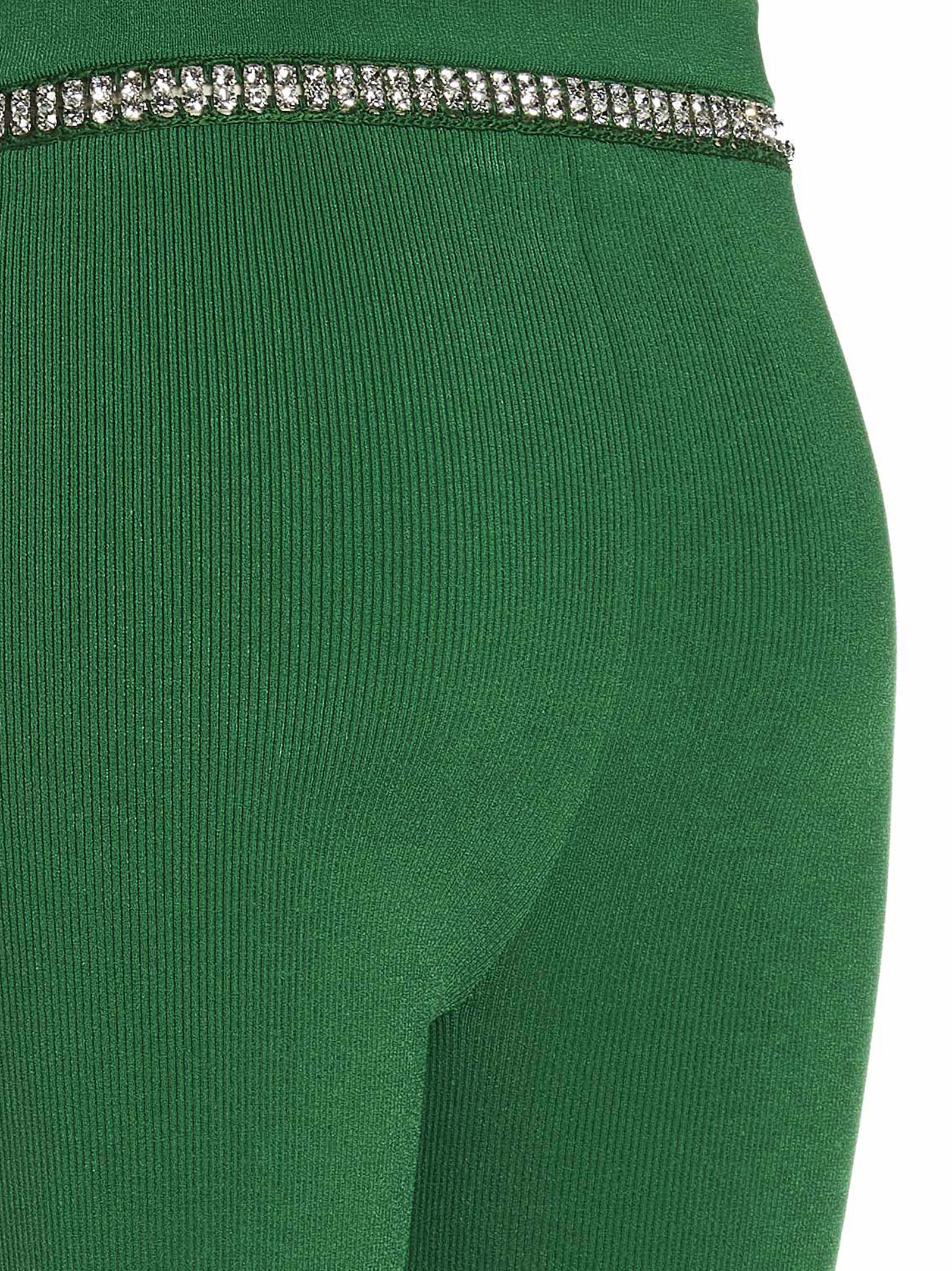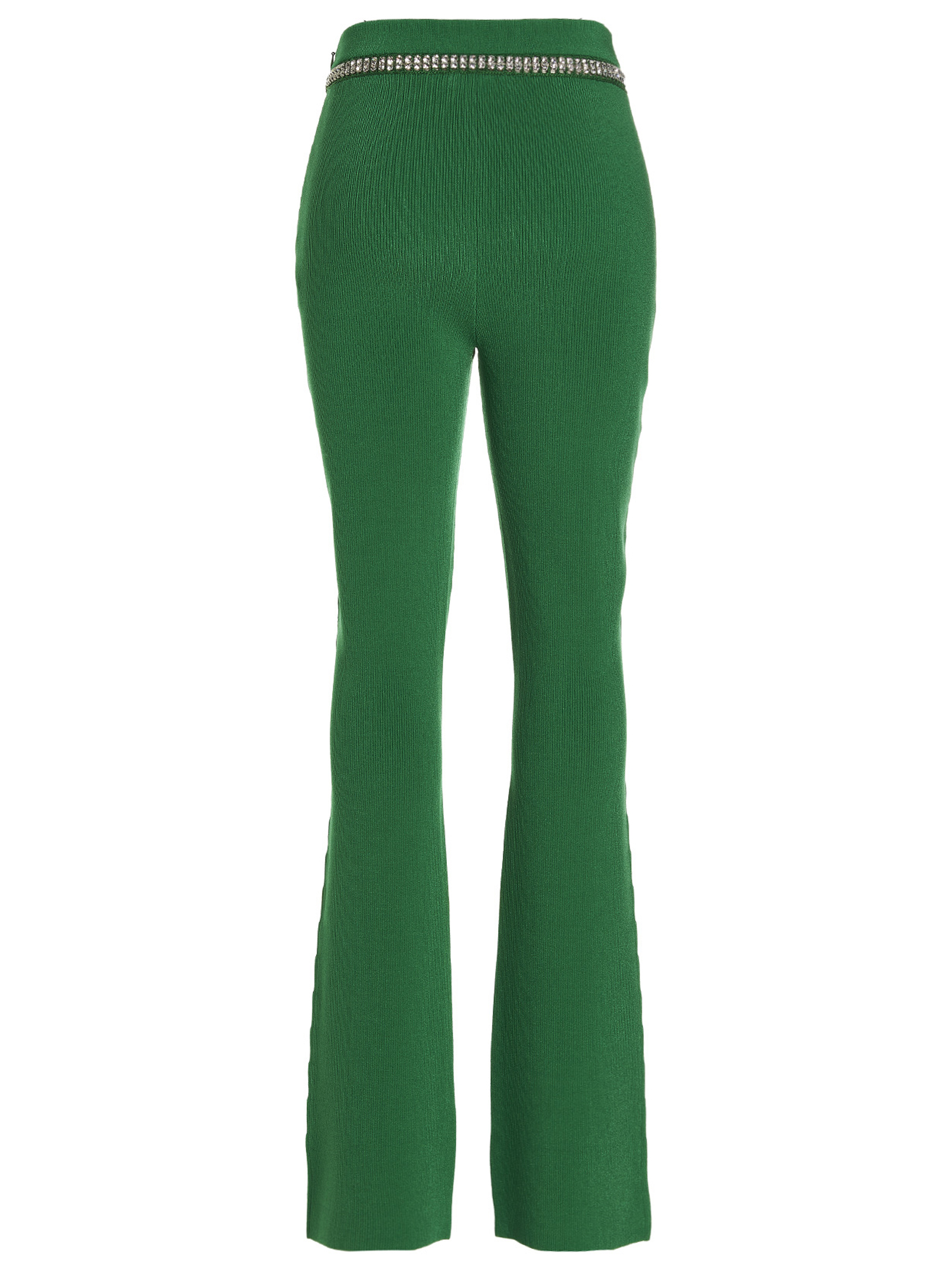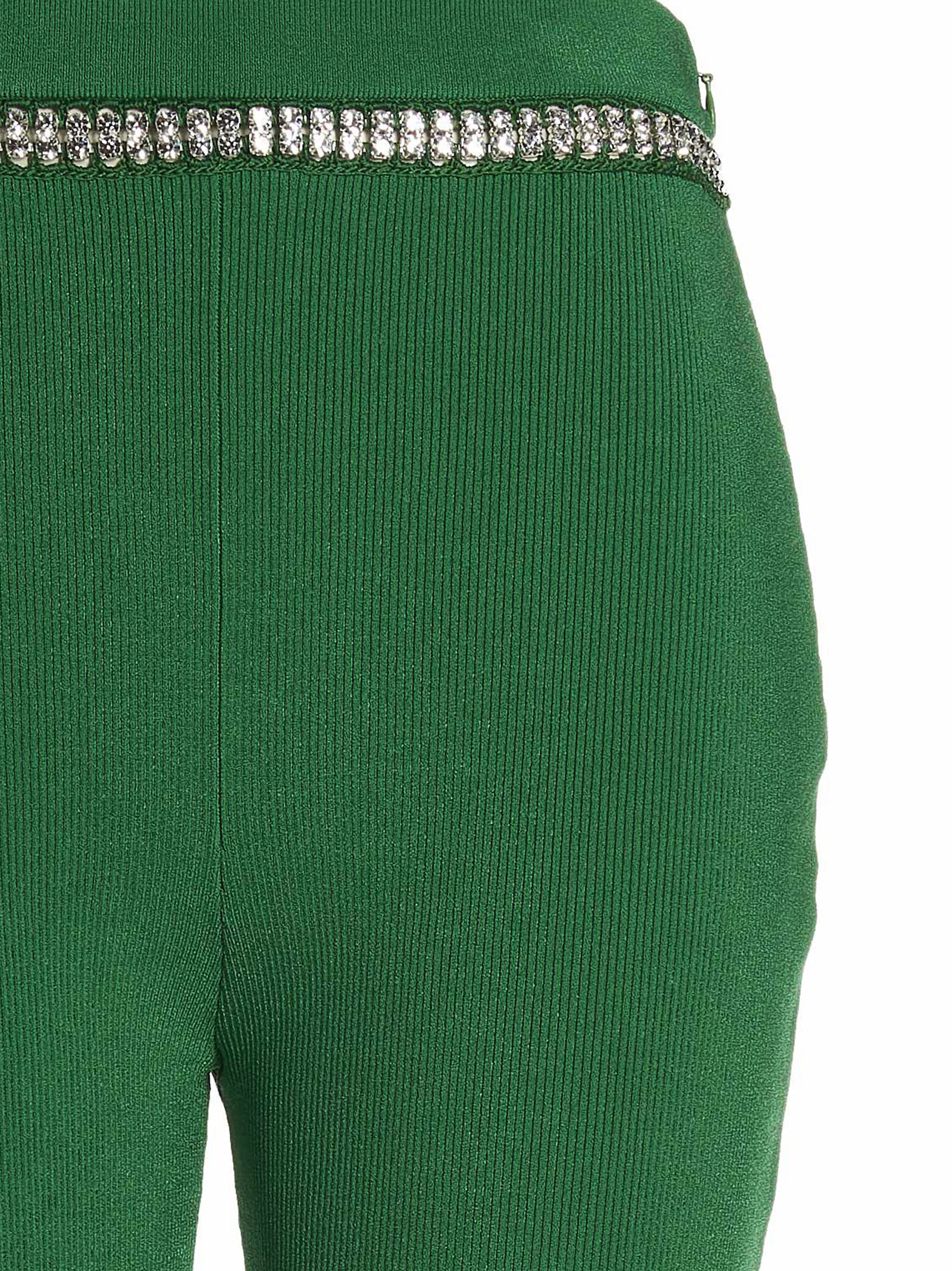 Ribbed viscose blend pants with jewel waistband and a side zip closure.