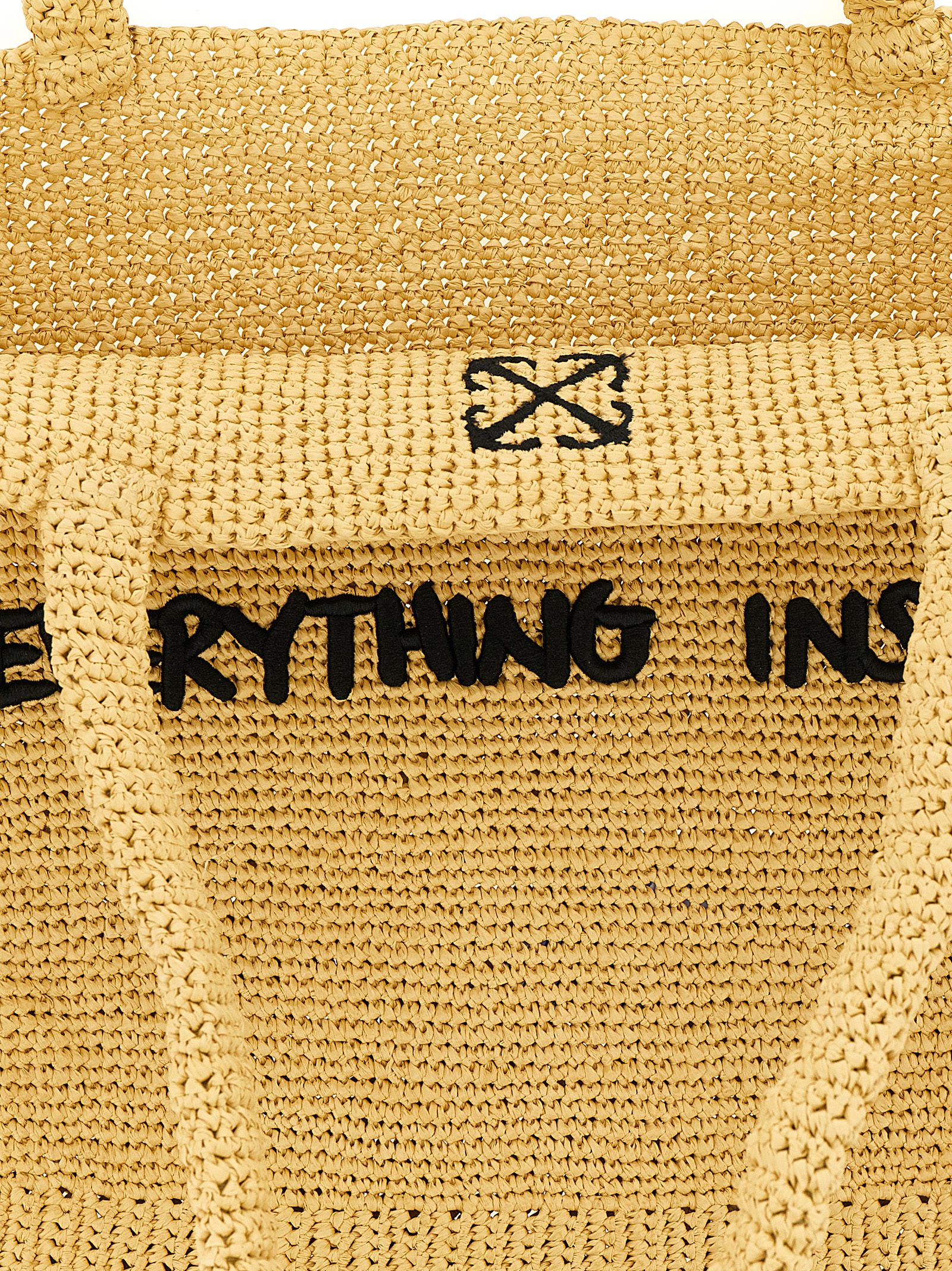 ‘Jitney’ shopping bag in woven raffia-effect fabric, contrast embroidery on the front, double fixed handle.