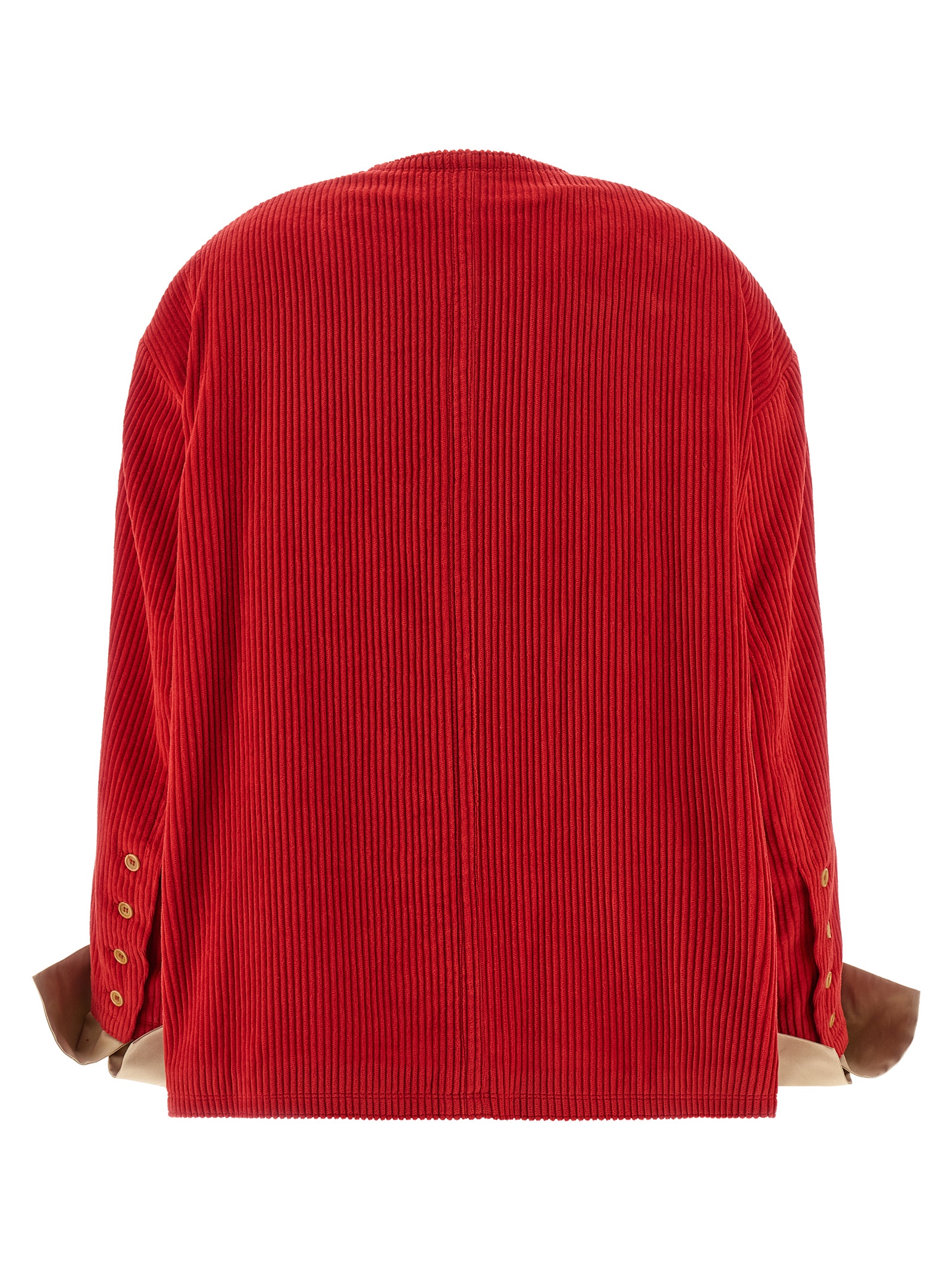 Robe-style style, flap pockets, long sleeves with contrasting turned-up double layer cuffs, slightly padded shoulder, half lining.