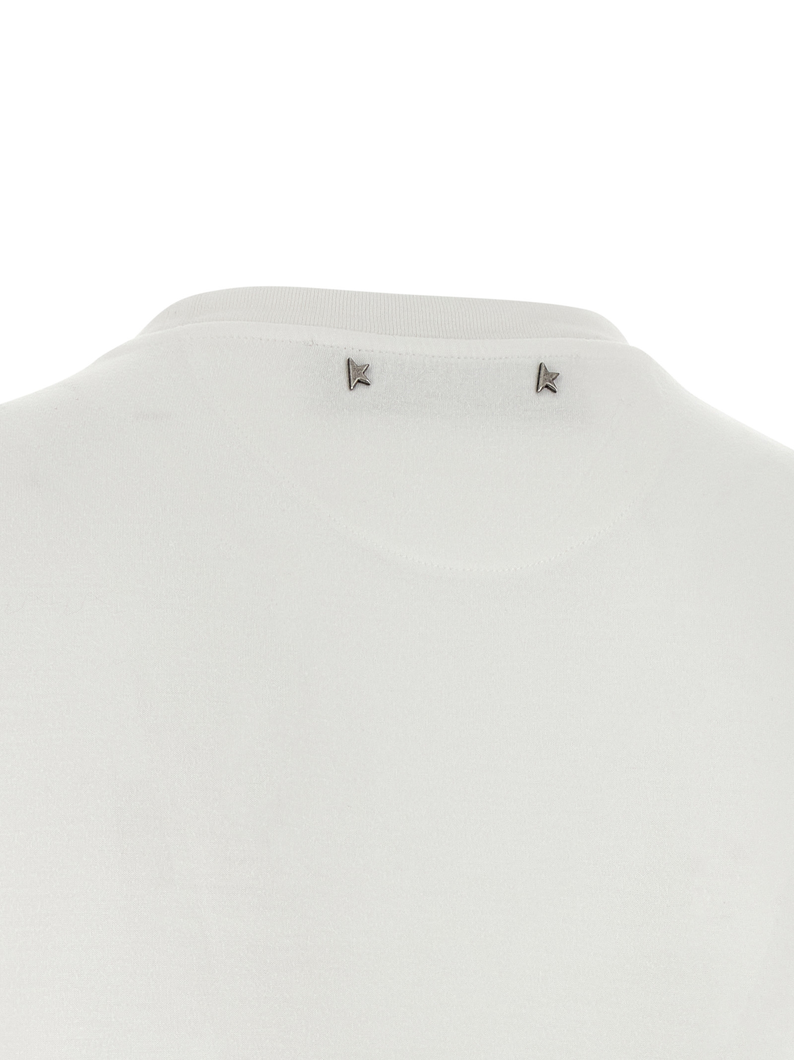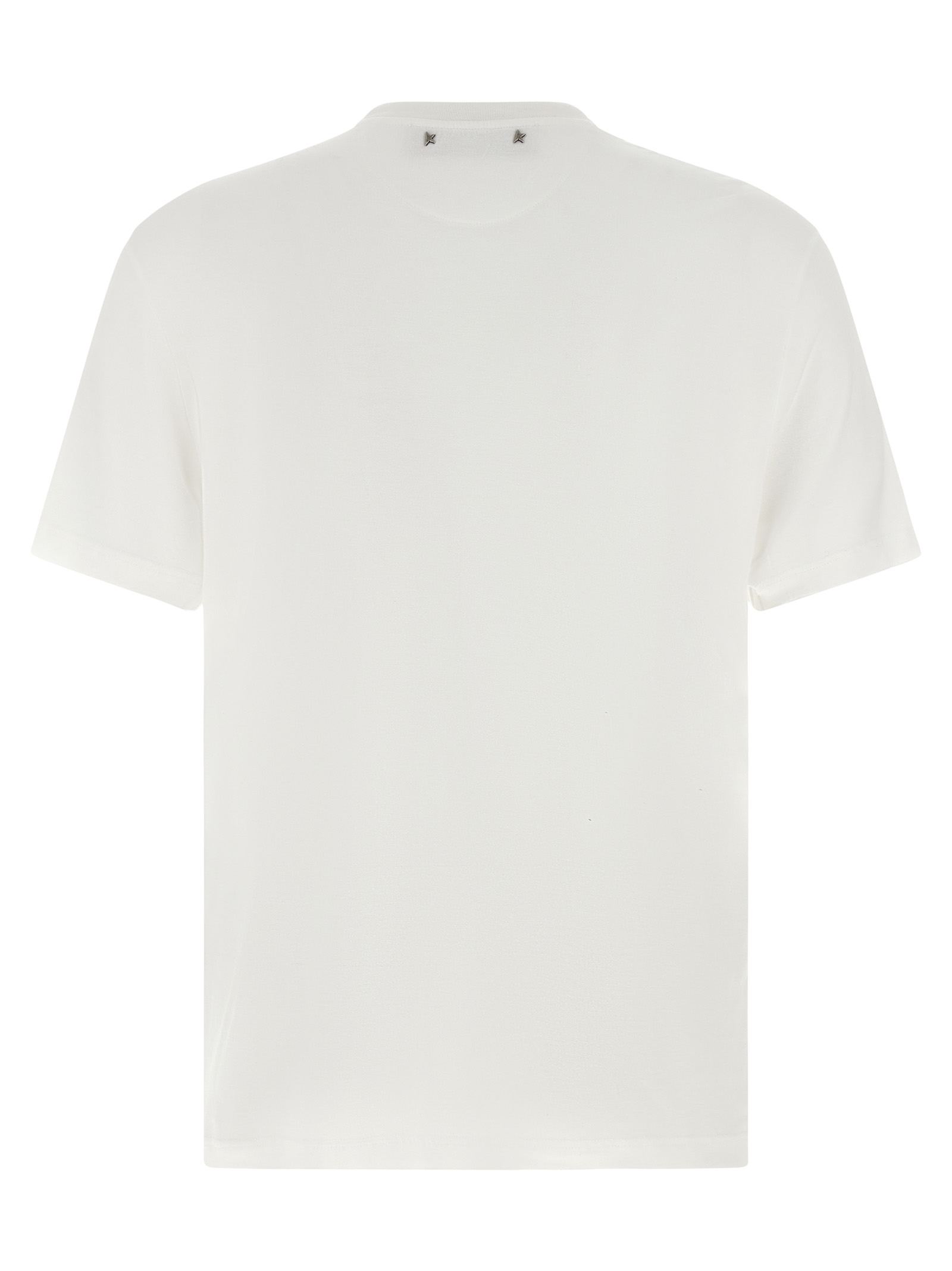 ‘Journey’ T-shirt in light flamed tencel jersey, watercolor effect ‘Flag’ print with vintage lived-in front effect, crew neck, short sleeves.