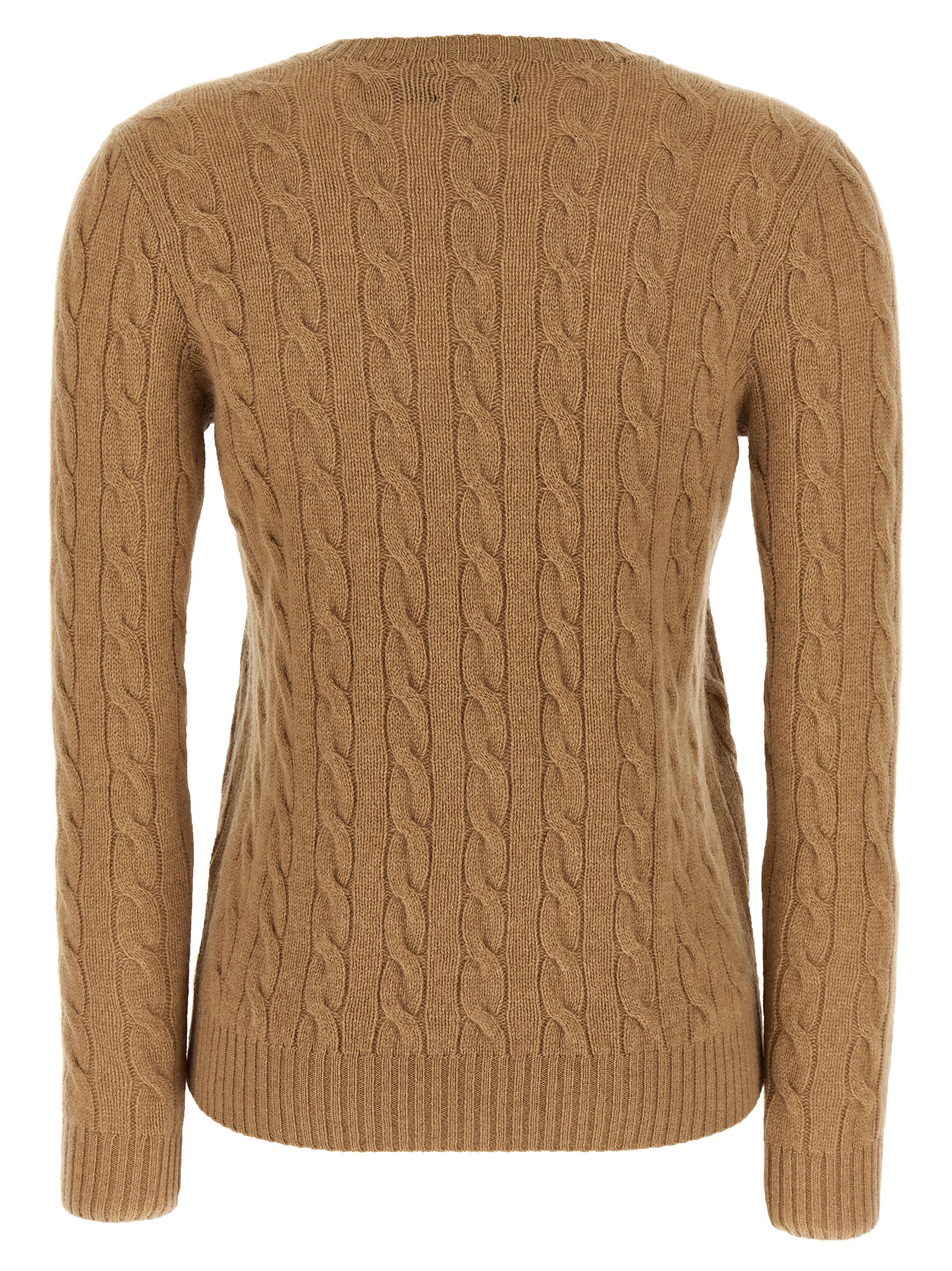 ‘Julianna’ wool and cashmere blend sweater with braided pattern, front logo embroidery, crew neck, long cuffed sleeves.