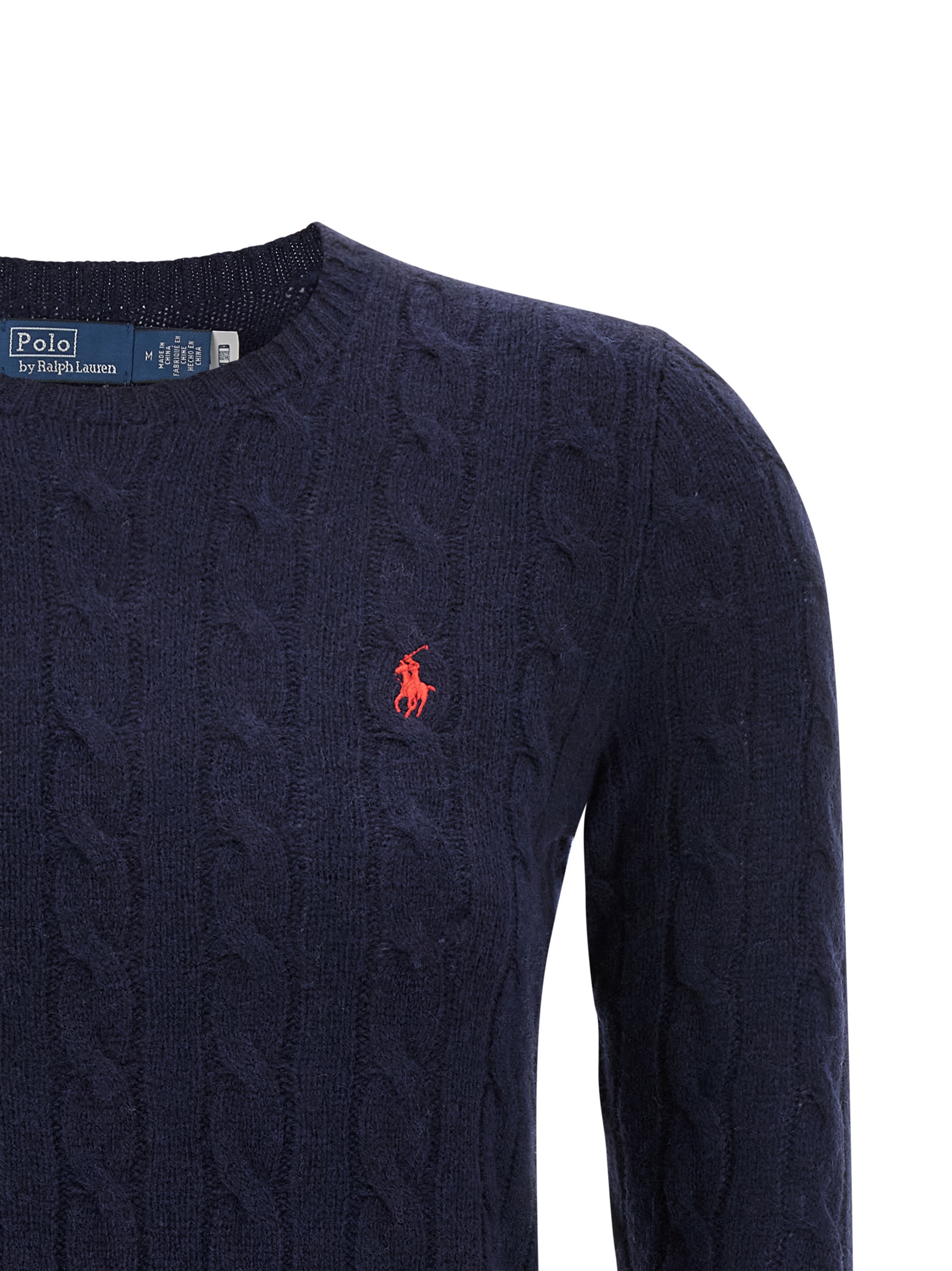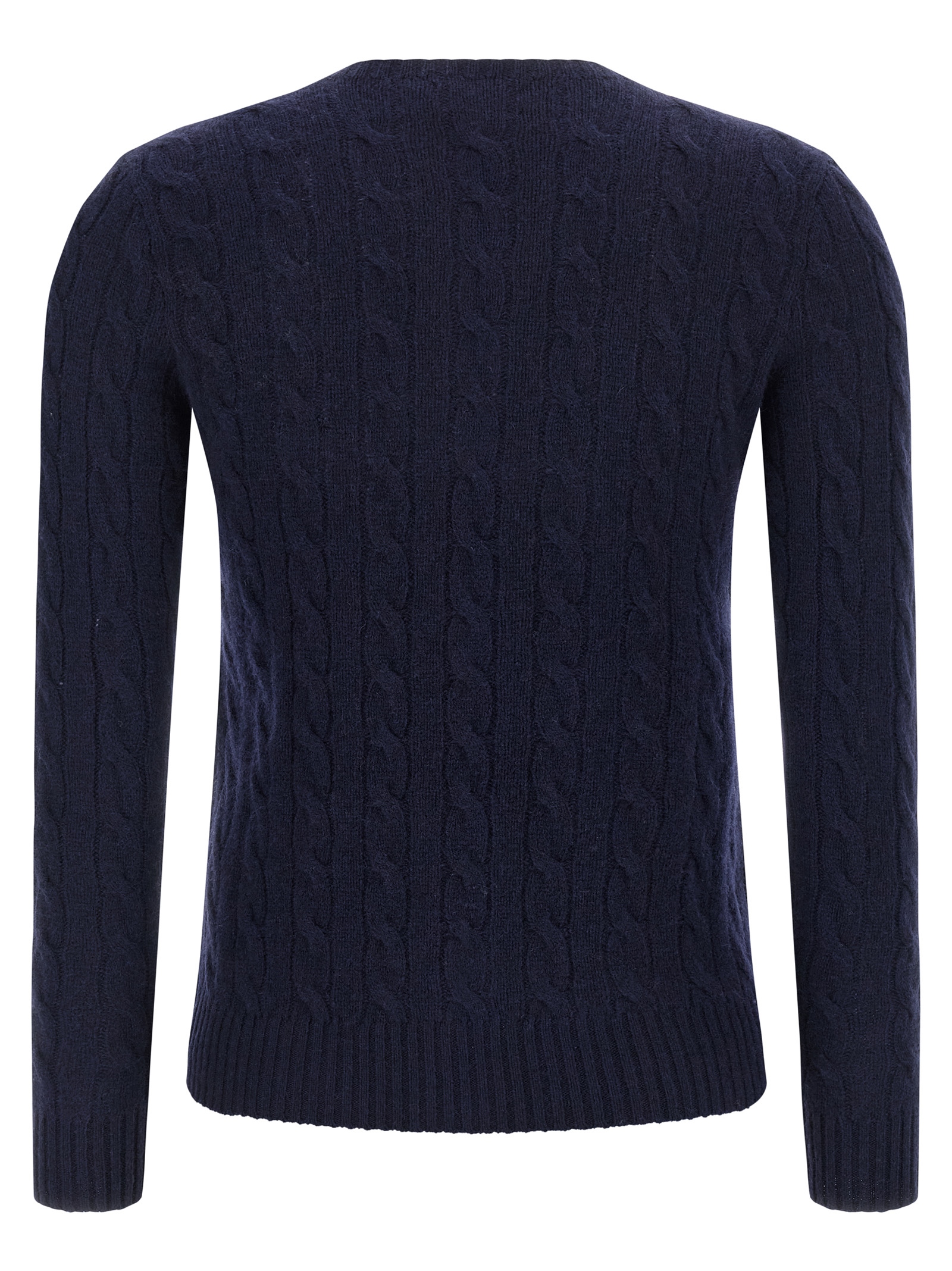 ‘Julianna’ wool and cashmere blend sweater with braided pattern, front logo embroidery, crew neck, long cuffed sleeves.