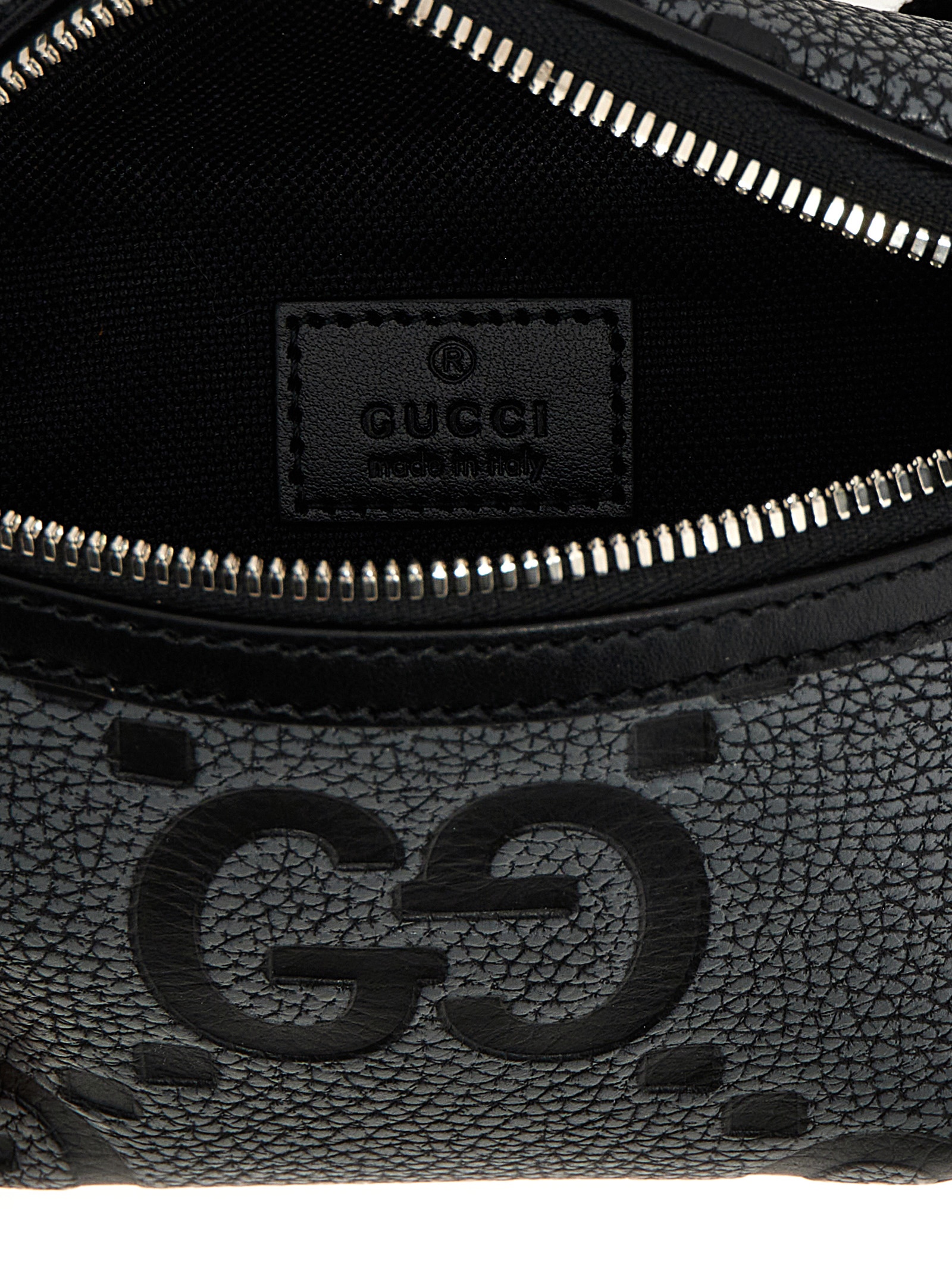 ‘Jumbo GG’ hammered leather fanny pack, zip closure, adjustable fabric shoulder strap.