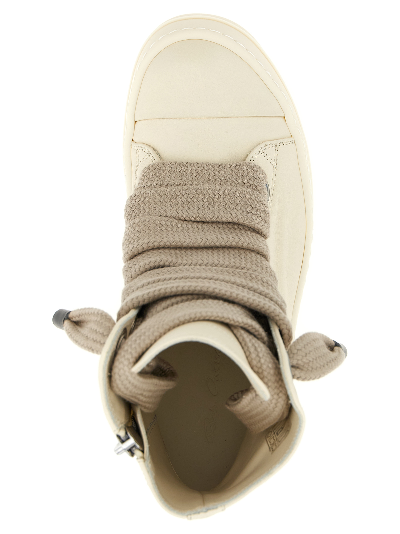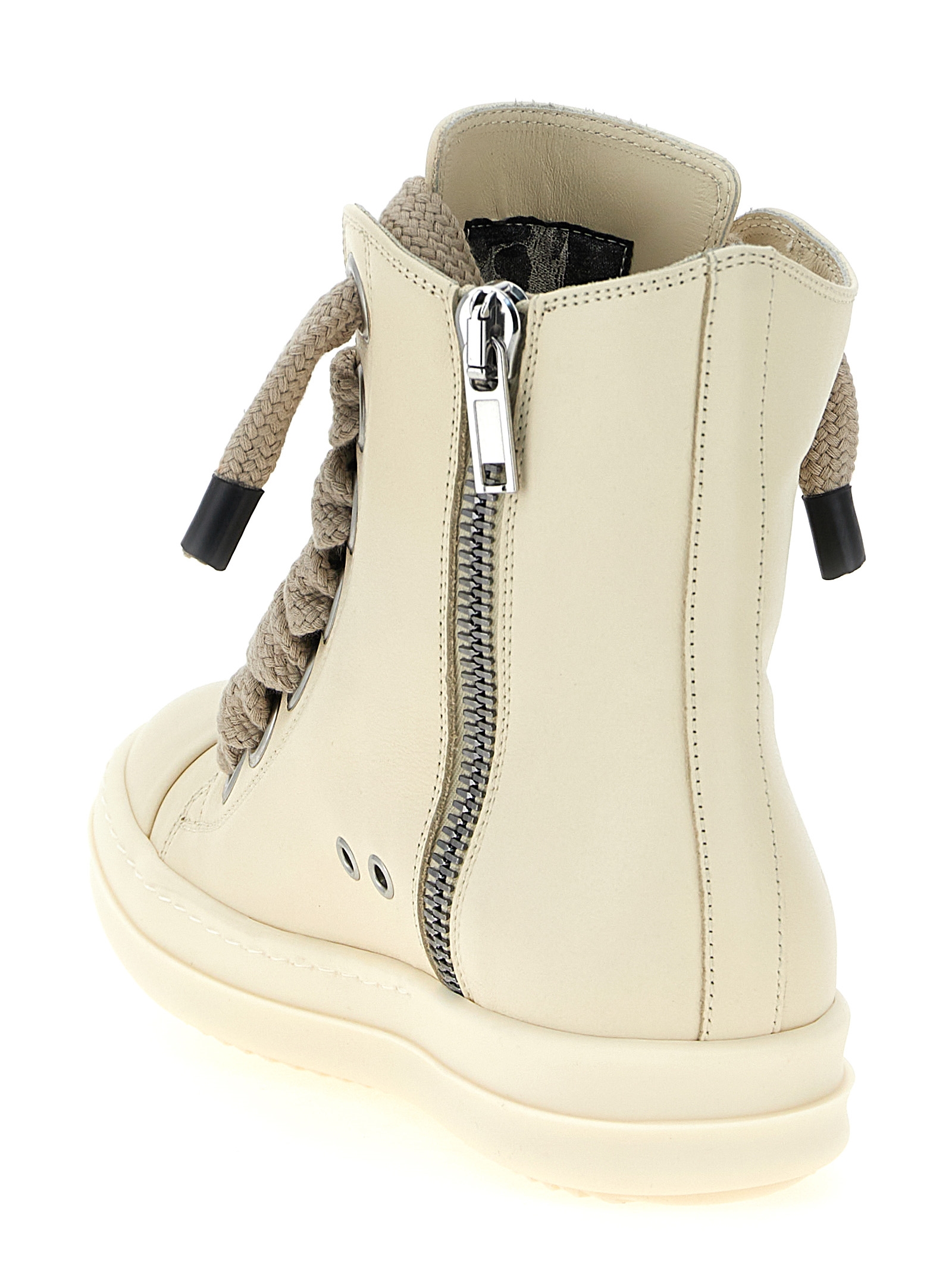 ‘Jumbolace’ leather sneakers with laces, side zip, rubber sole and toe cap.