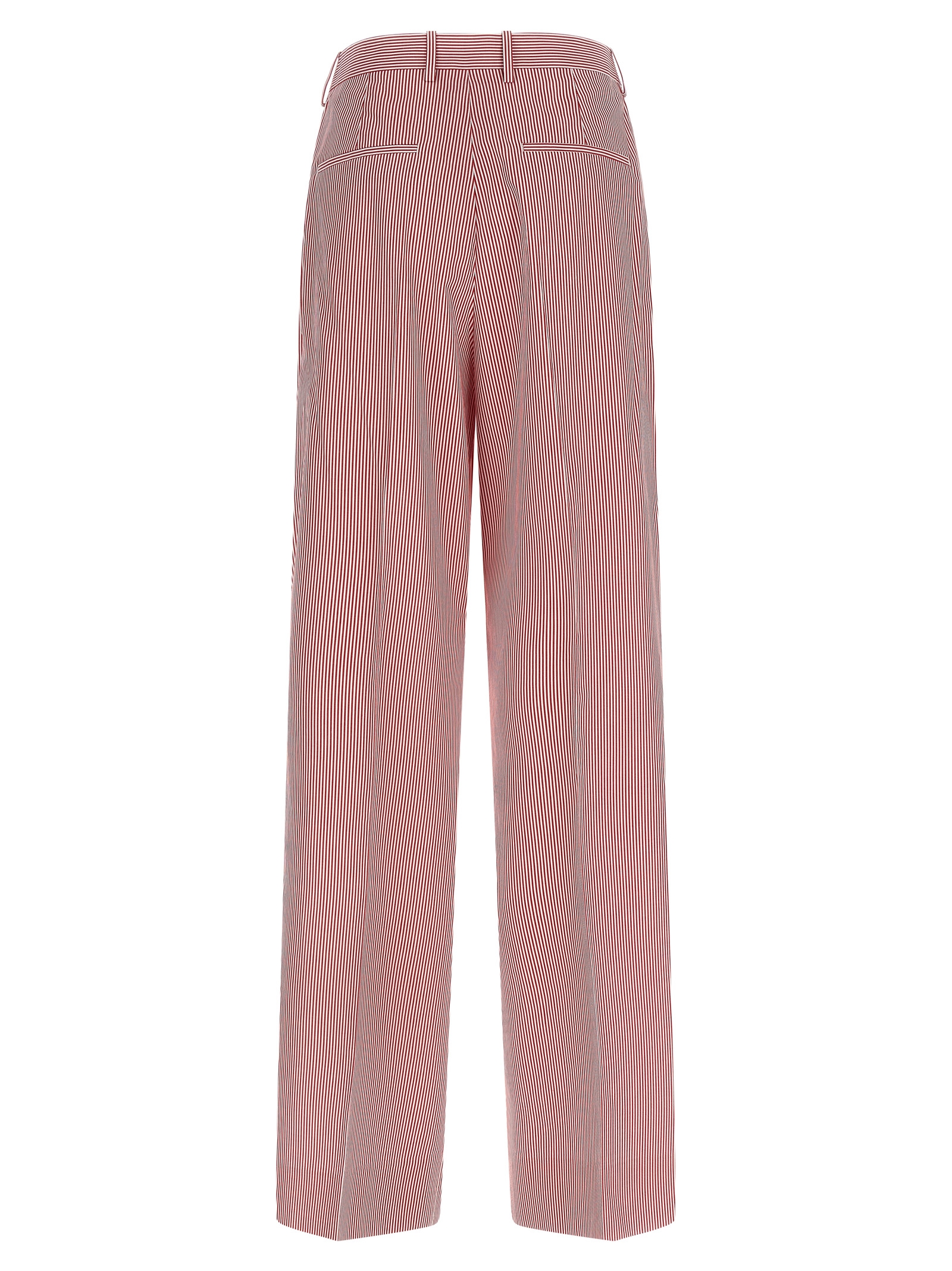 ‘Juno’ tailored pants in striped cotton poplin with double front pincer, wide leg, front hook closure, slanted side pockets and front stretched pleat.