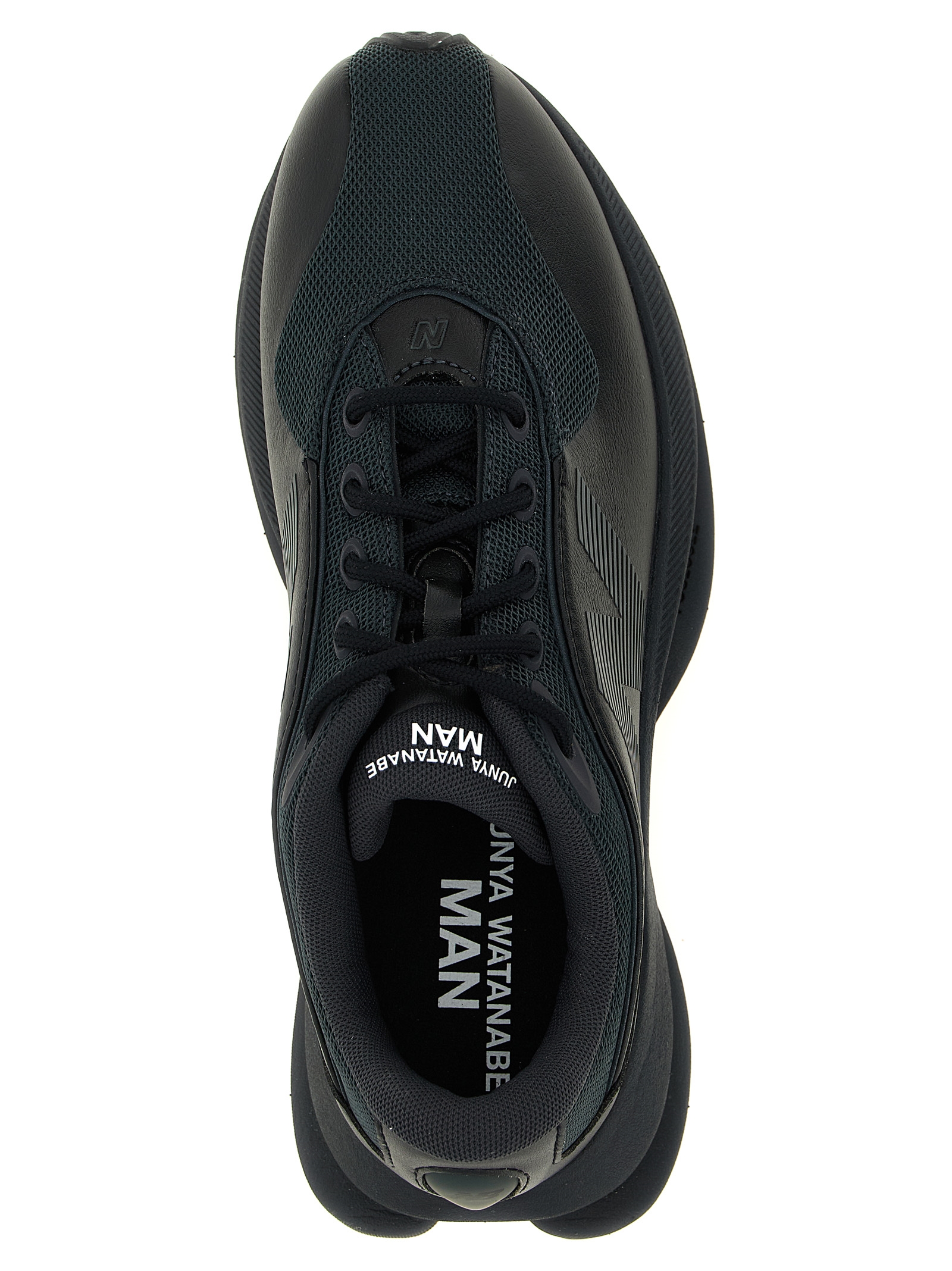 Junya Watanabe X New Balance ‘TF100’ sneakers in leather and mesh effect fabric, side logo, 3D lettering logo on tongue, lace-up closure, double-layer ‘FuelCell’ midsole with cut-out on the arch for greater support and lightness, sole with racing flat-derived pattern for better traction.