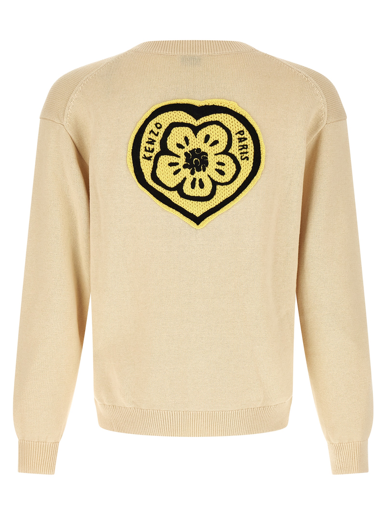 Cotton and wool blend cardigan with ‘KENZO Boke Heart’ embroidery at the front and back, V-neck, front button closure, long cuffed sleeves.