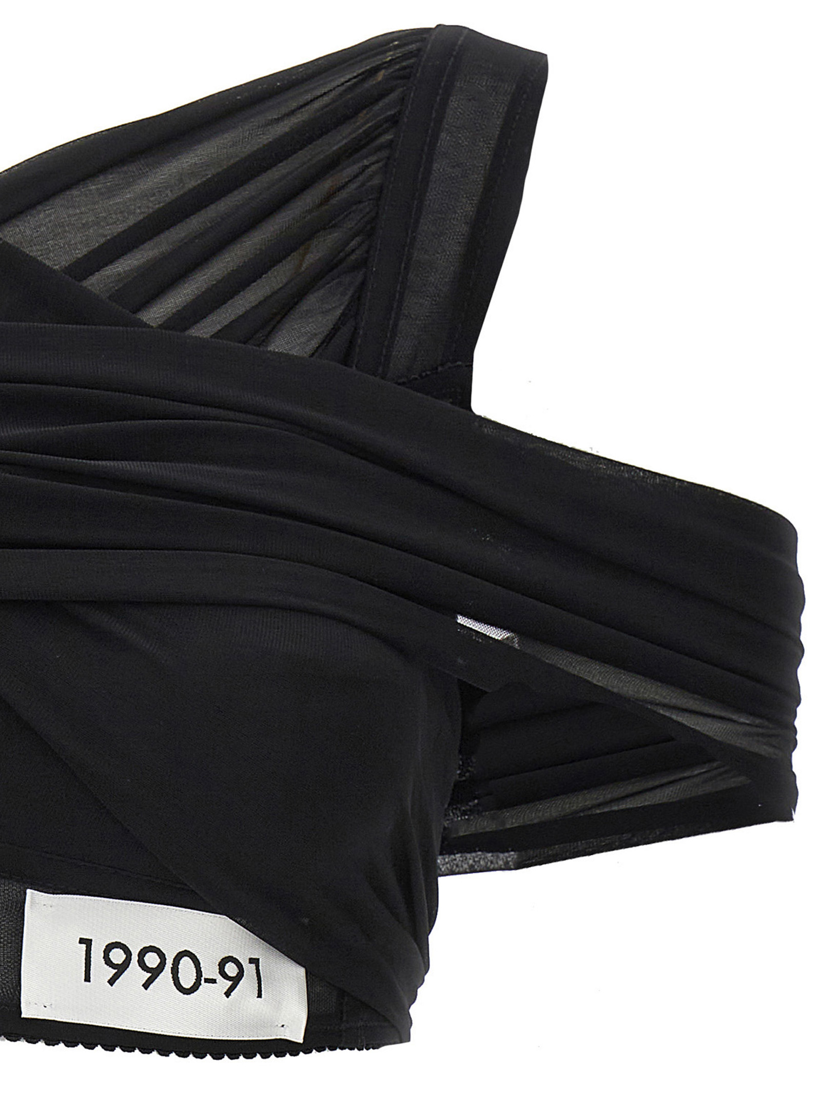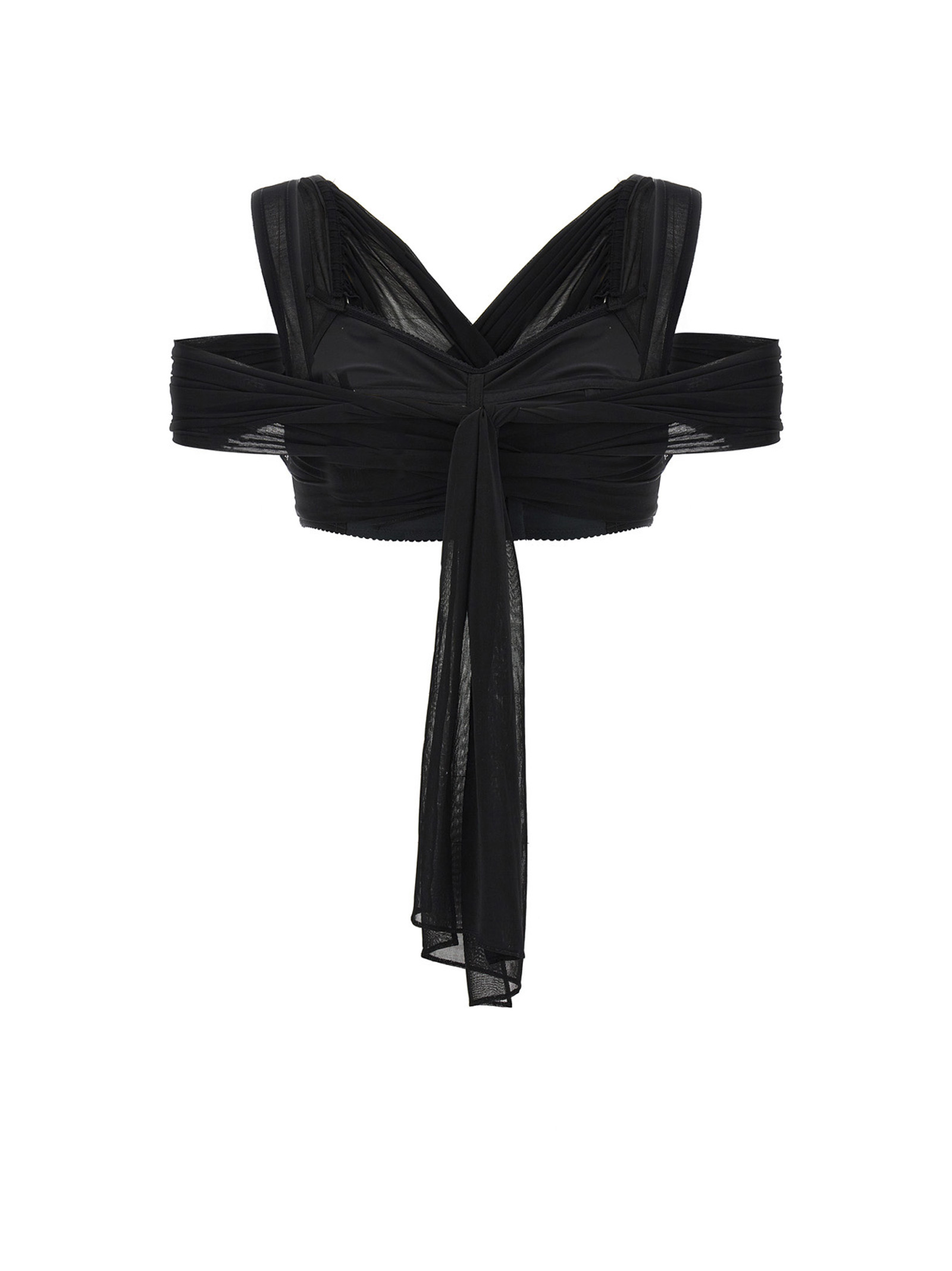 ‘Kim Dolce&Gabbana’ transparent organzine cropped top with crossed over the crossed shoulders.