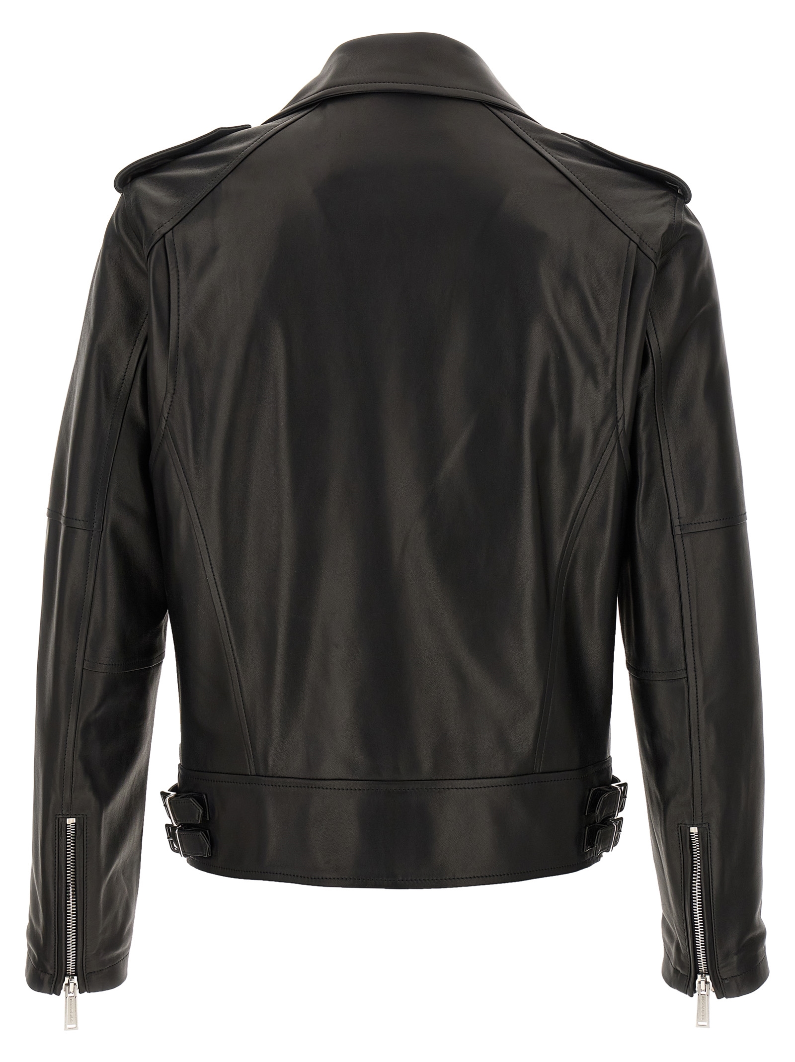 Kiodo’ leather jacket with zip closure, pockets, long sleeves and silver metal details.