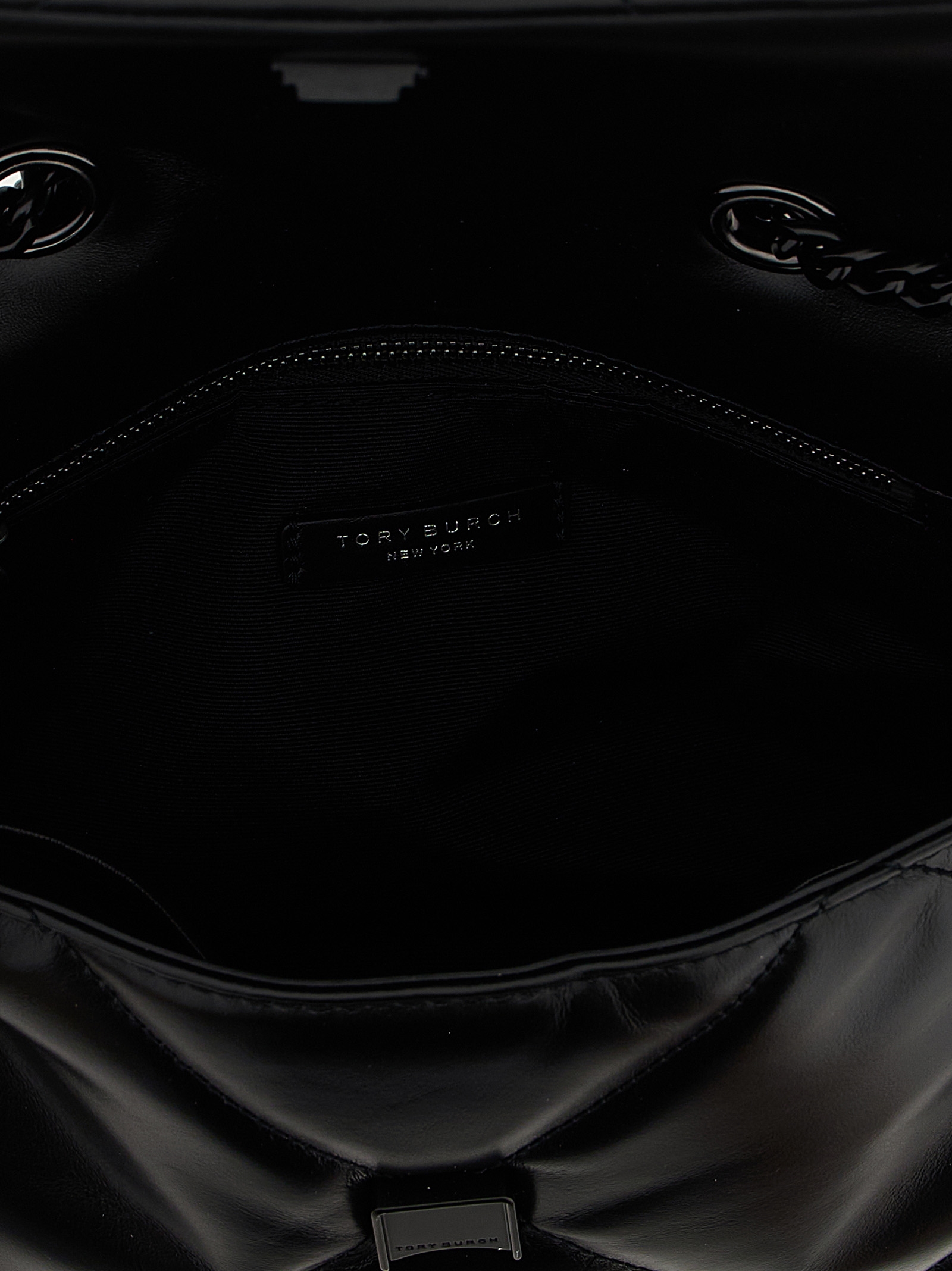 Small ‘Kira’ shoulder bag in diamond quilted leather with matelassé processing, magnetic flap closure with tone-on-tone metal logo on the front, sliding barbazzale chain shoulder strap with leather protection.