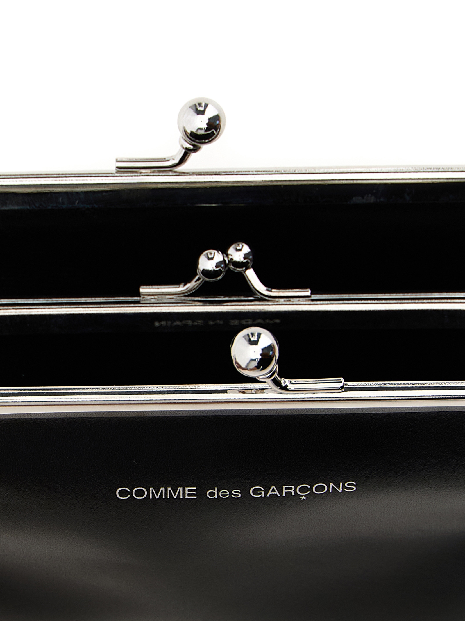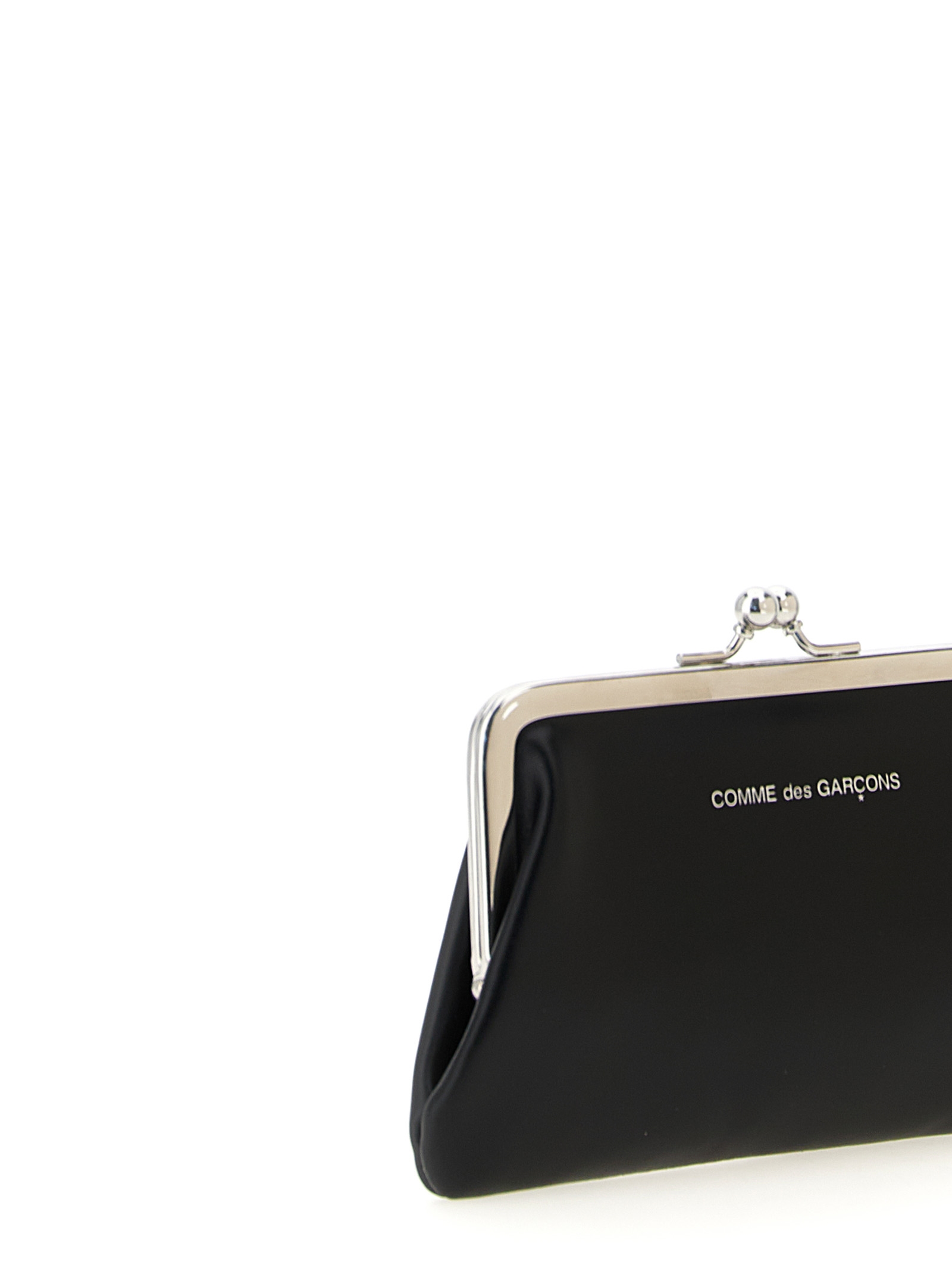 ‘Kiss Clasp’ leather coin purse with front logo print and snap closure.