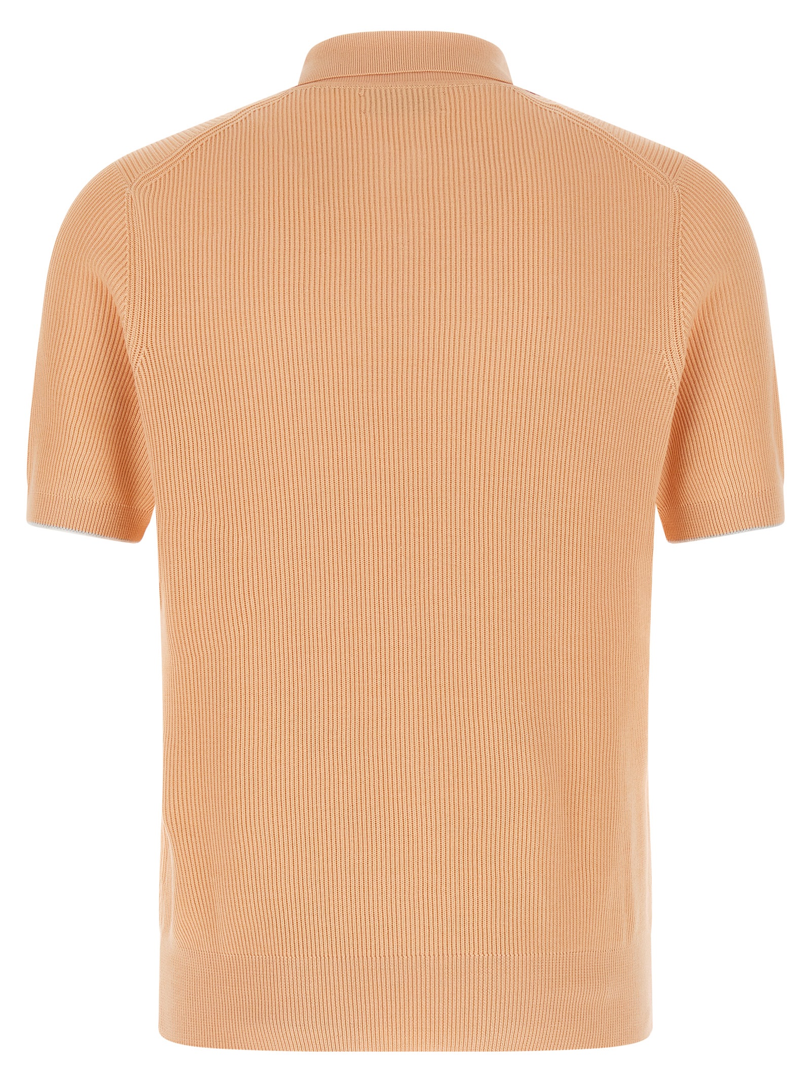 Ribbed cotton knit polo shirt with mini V-neck, short sleeves with contrasting piping.