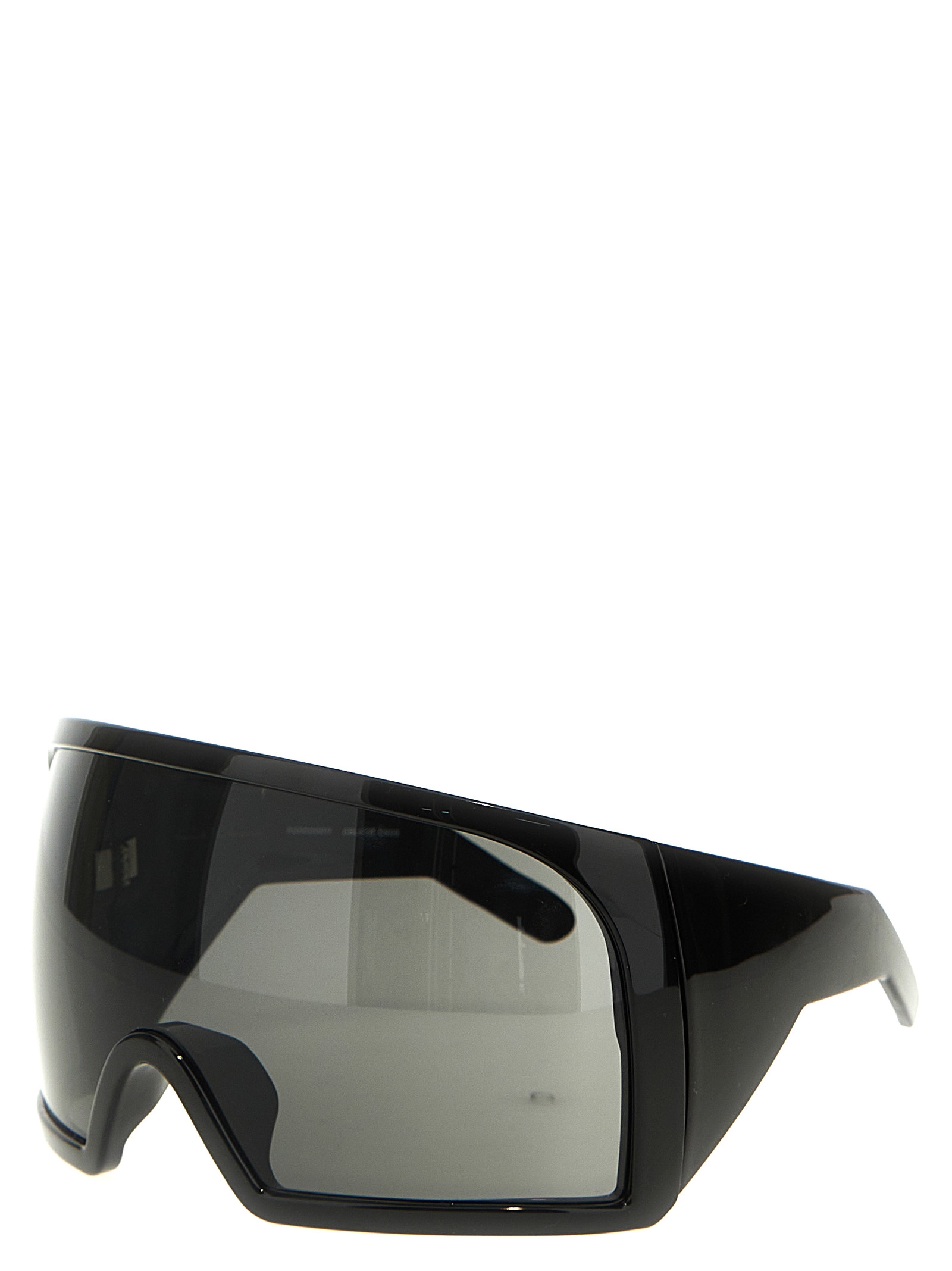 ‘Krister’ sunglasses with black mask frame and single transparent maxi lens.