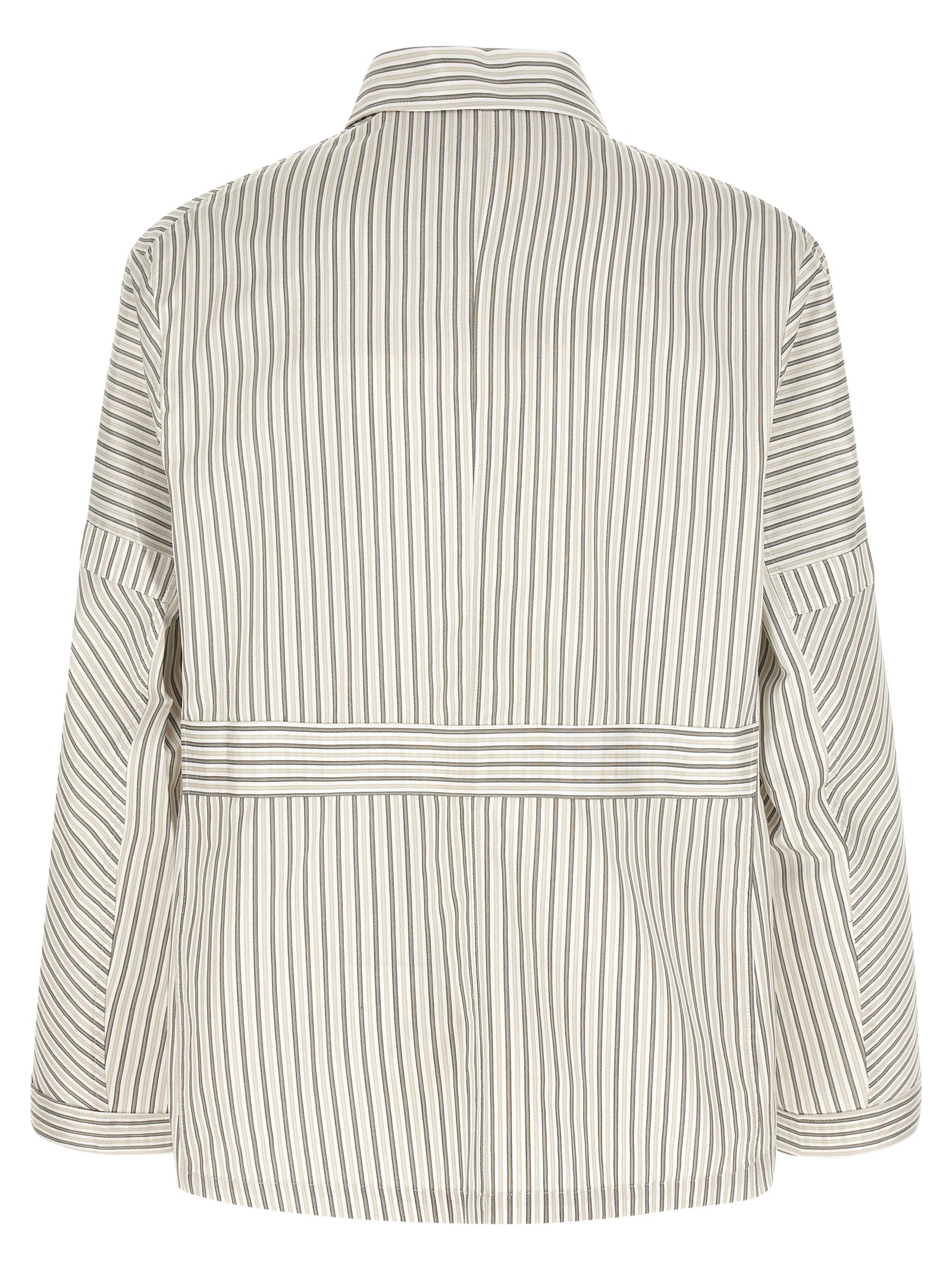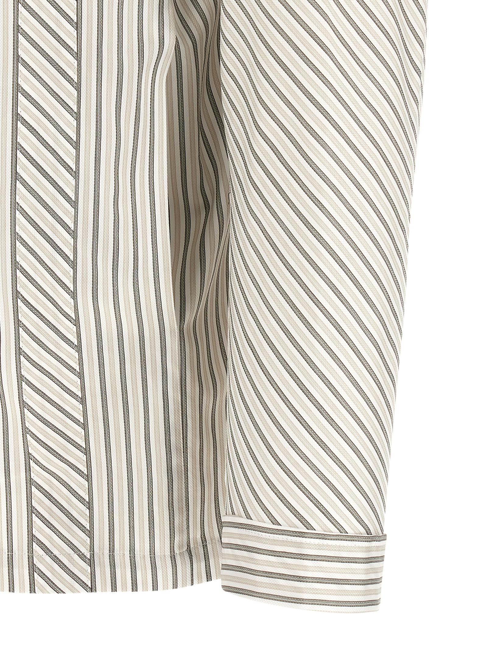 ‘Kyan’ cotton shirt with strips arranged in different directions, pajama model, multi-panel structure, iconic closure with strap and front buttons, long cuffed sleeves.
