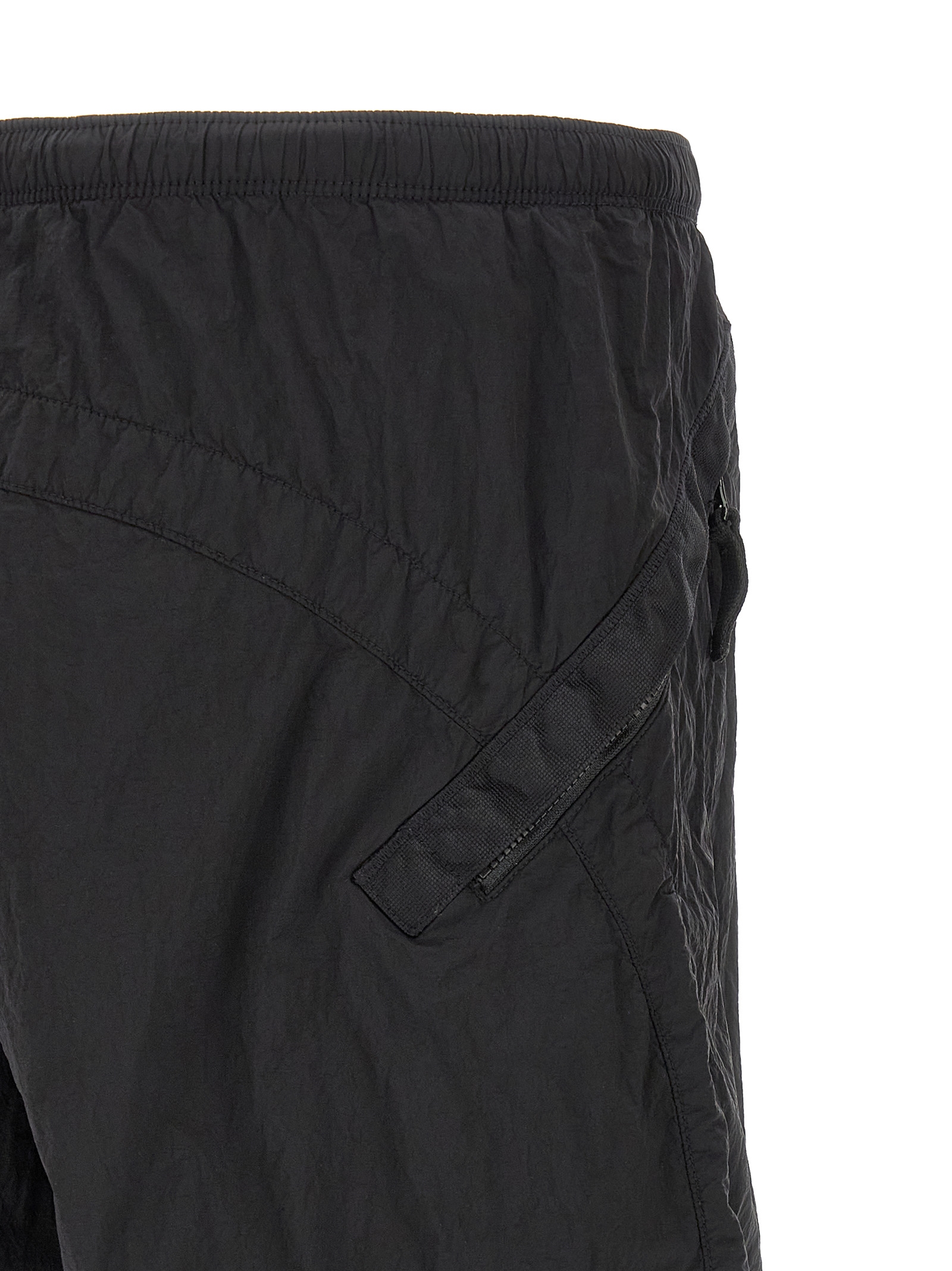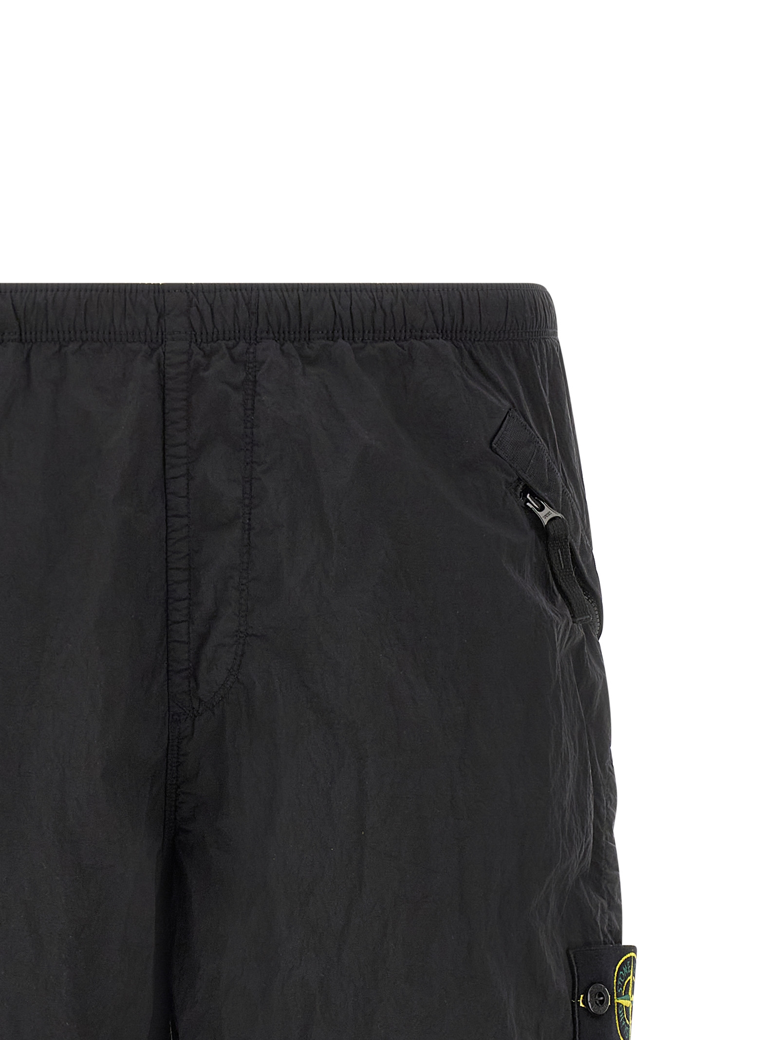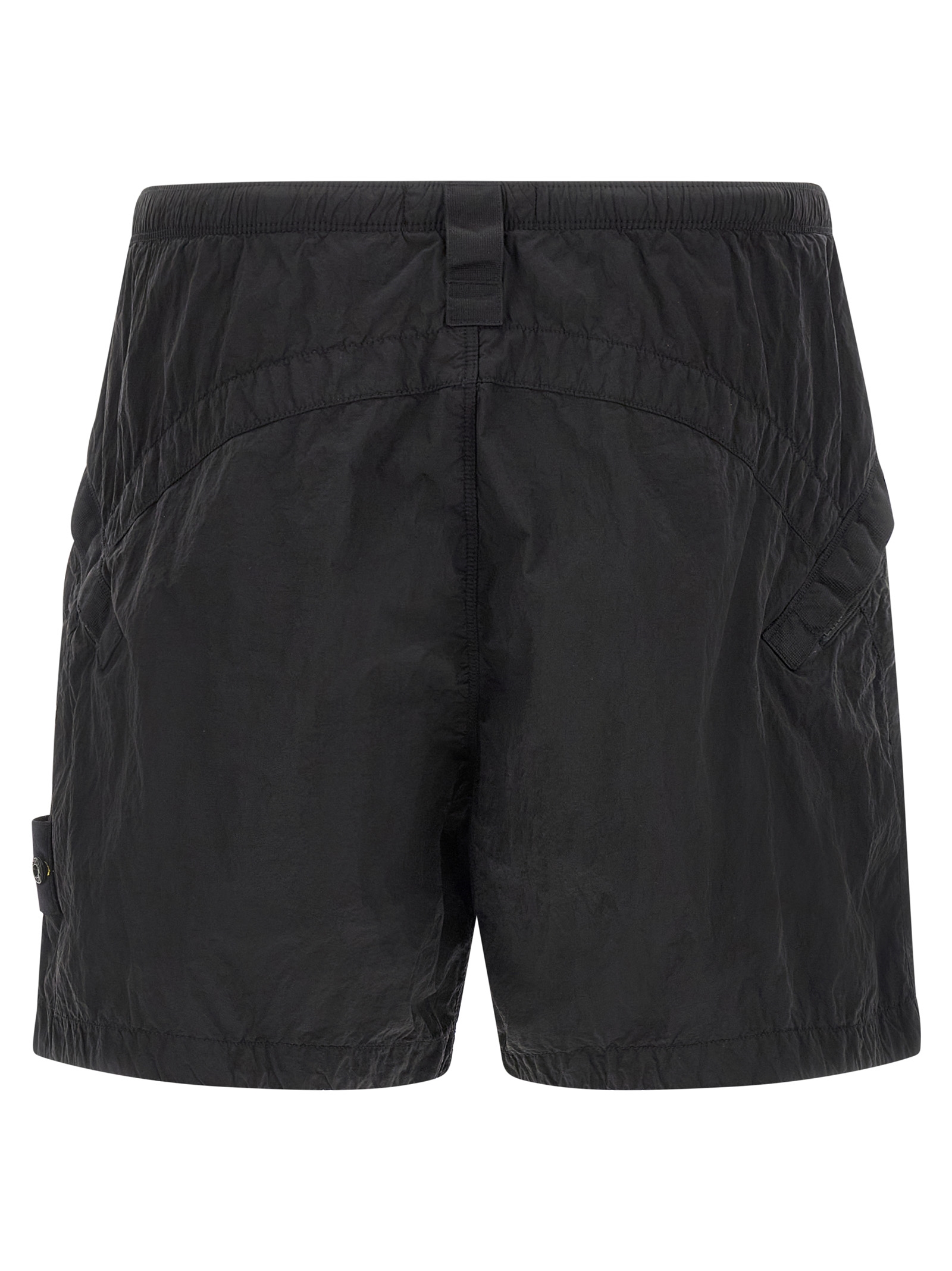 ‘L100008’ bermuda shorts in Stone Island Nylon Metal fabric subjected to double dyeing process, mesh lining, drawstring elastic waistband, trompe l’oeil flap, side Logo Badge, pockets.