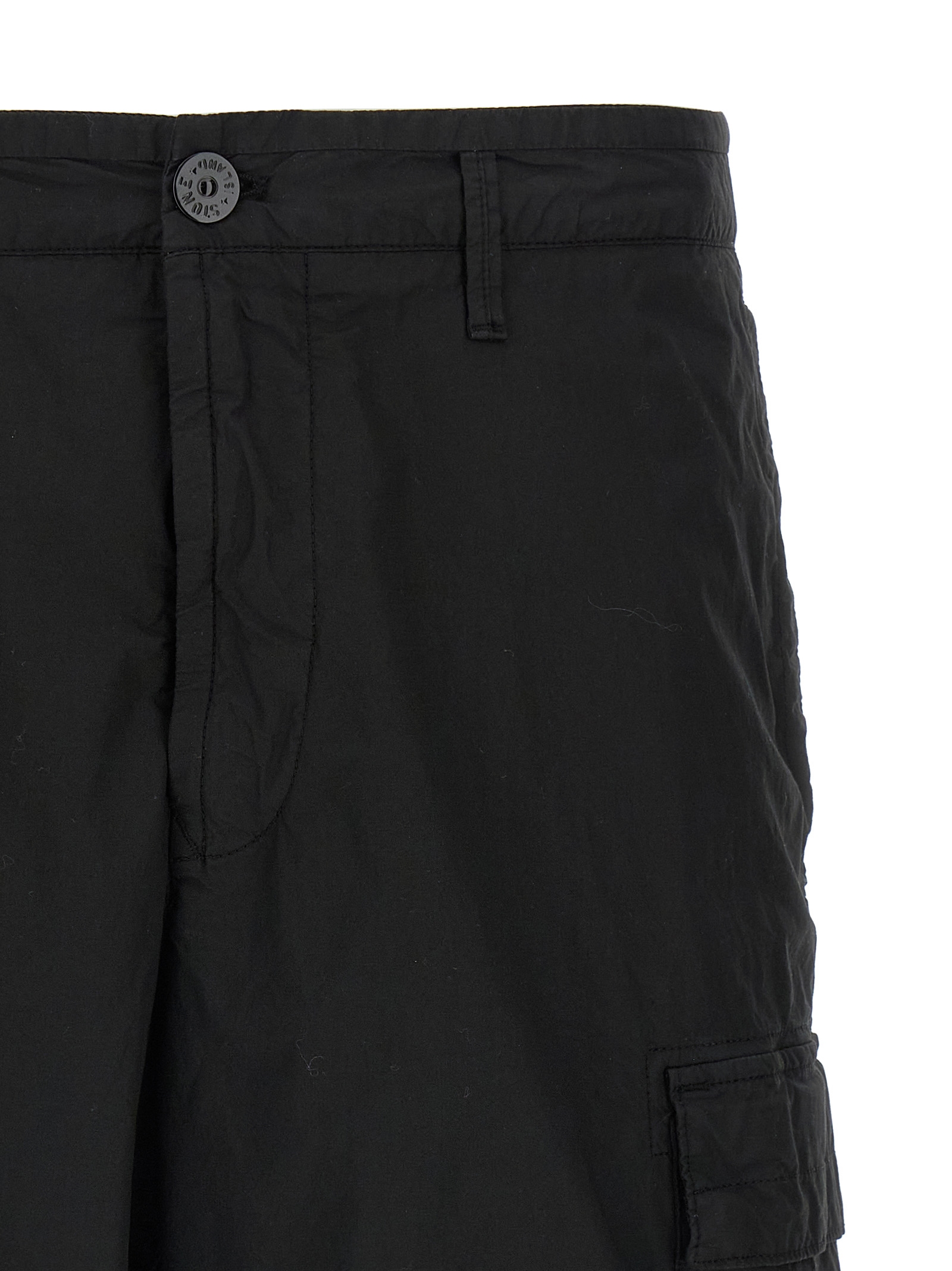 ‘L100020’ bermuda shorts in light ‘Paracadute’ garment-dyed stretch cotton canvas, cargo style with side pockets and logo badge, zip and front button closure, pockets.