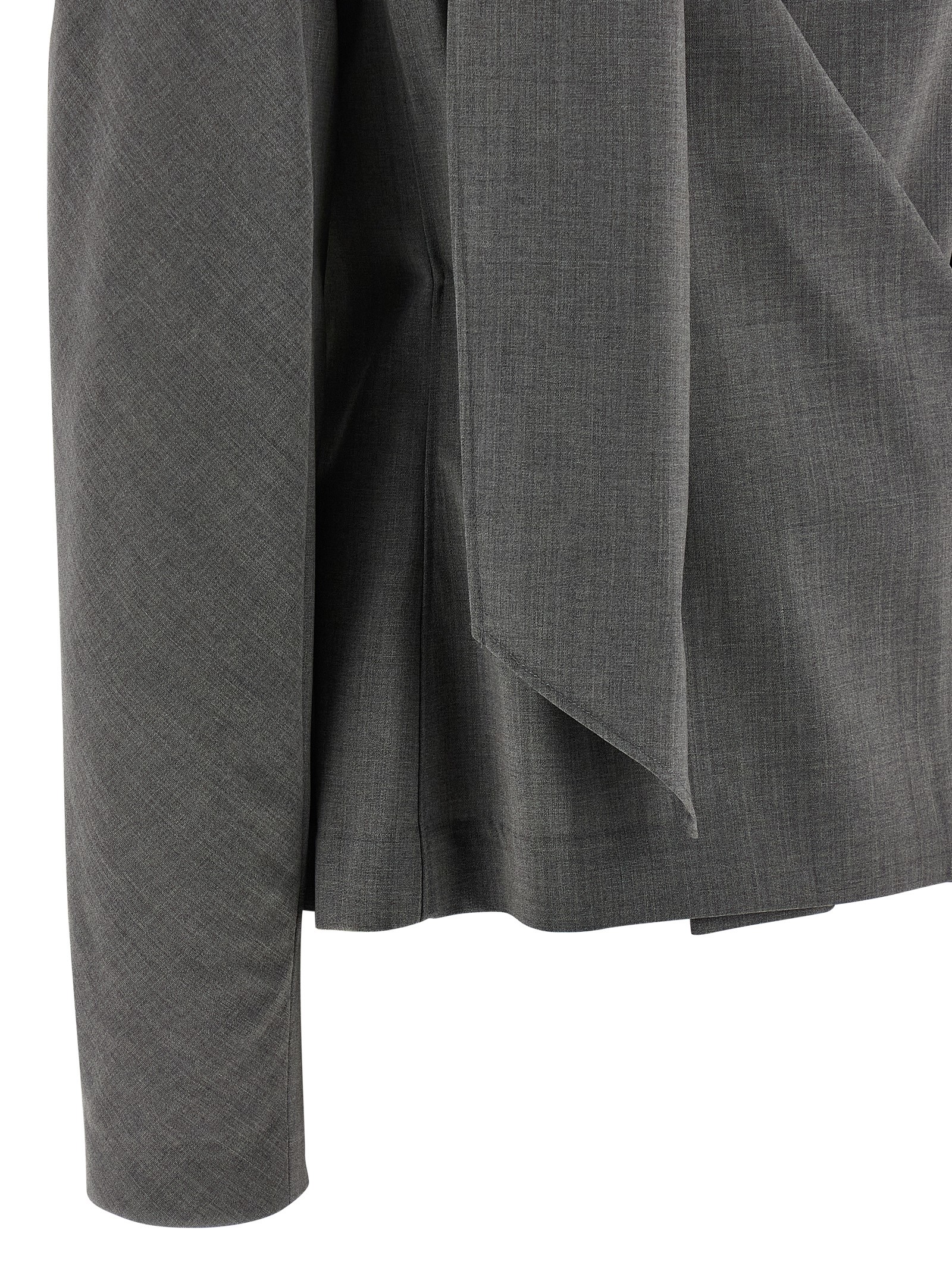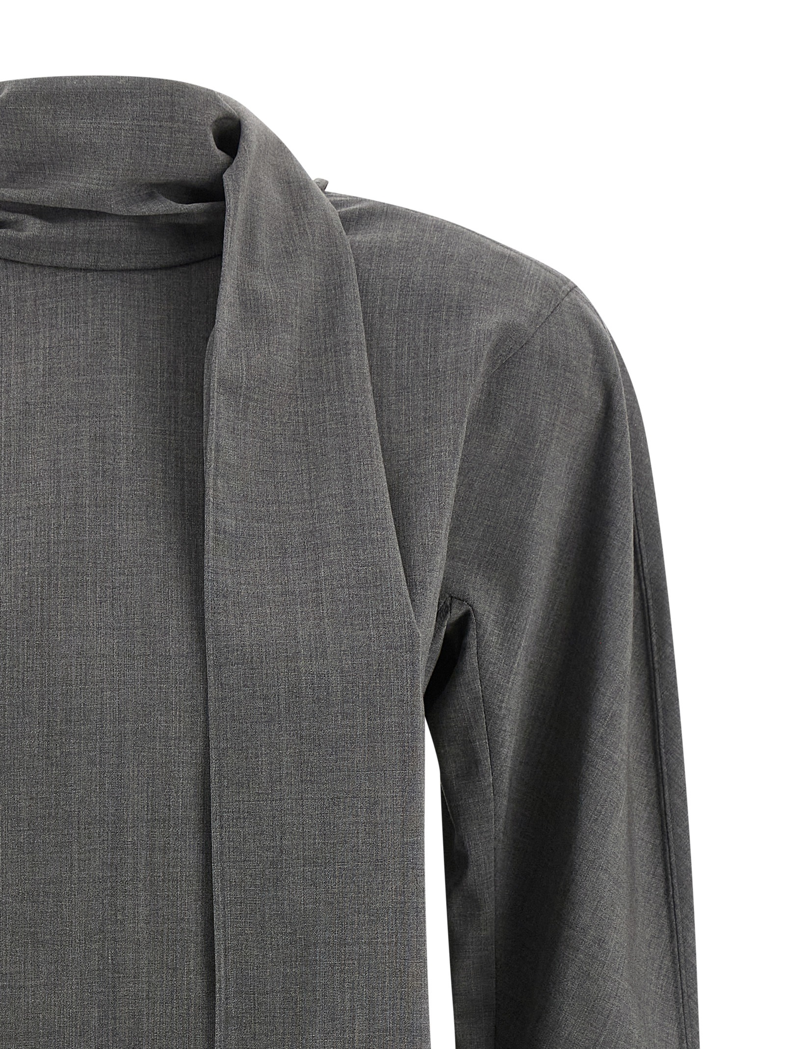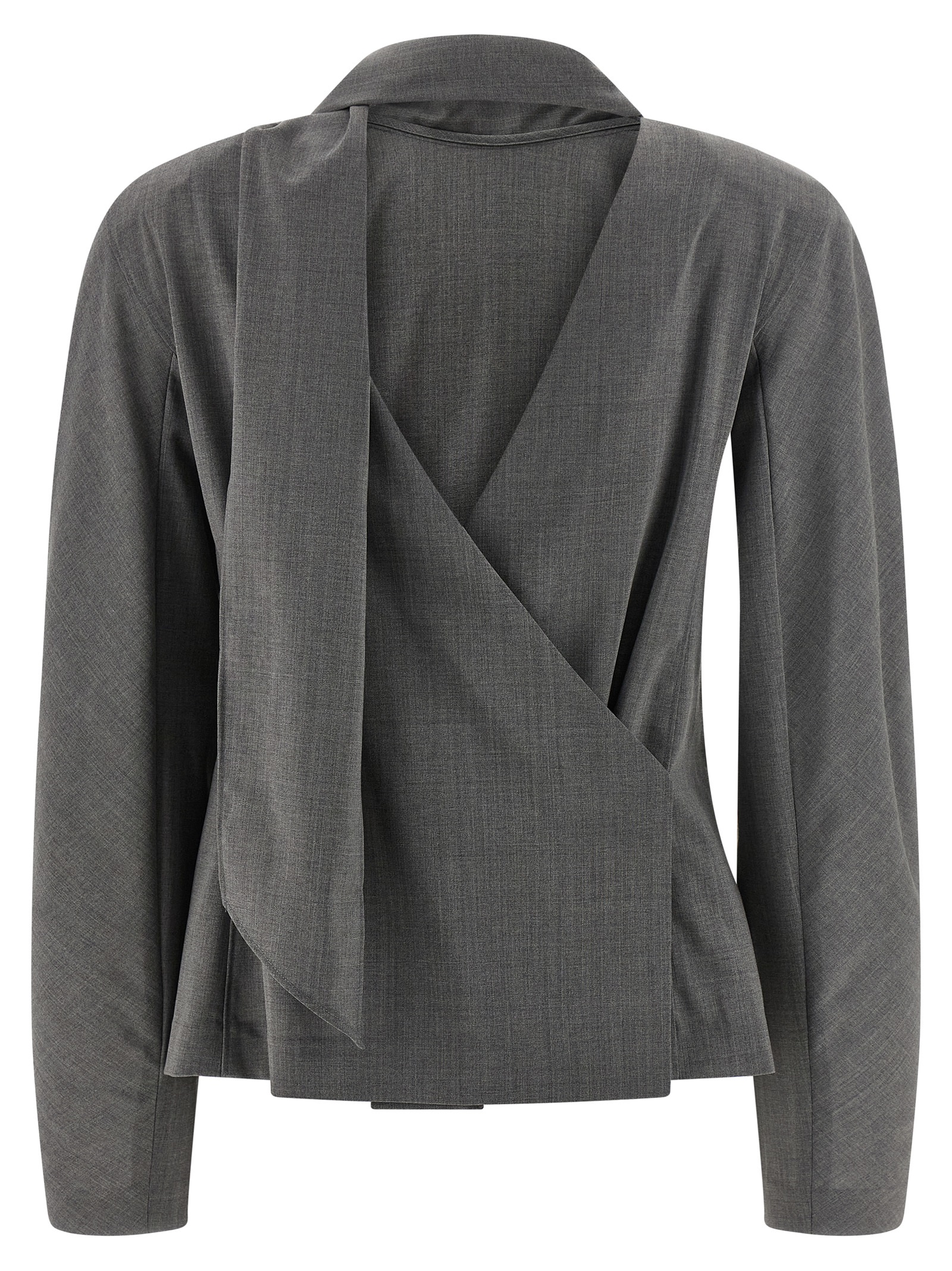 ‘La blouse Chale’ wool blend shirt with V-neck and crossover closure with drawstring and automatic, long sleeves with padded shoulders