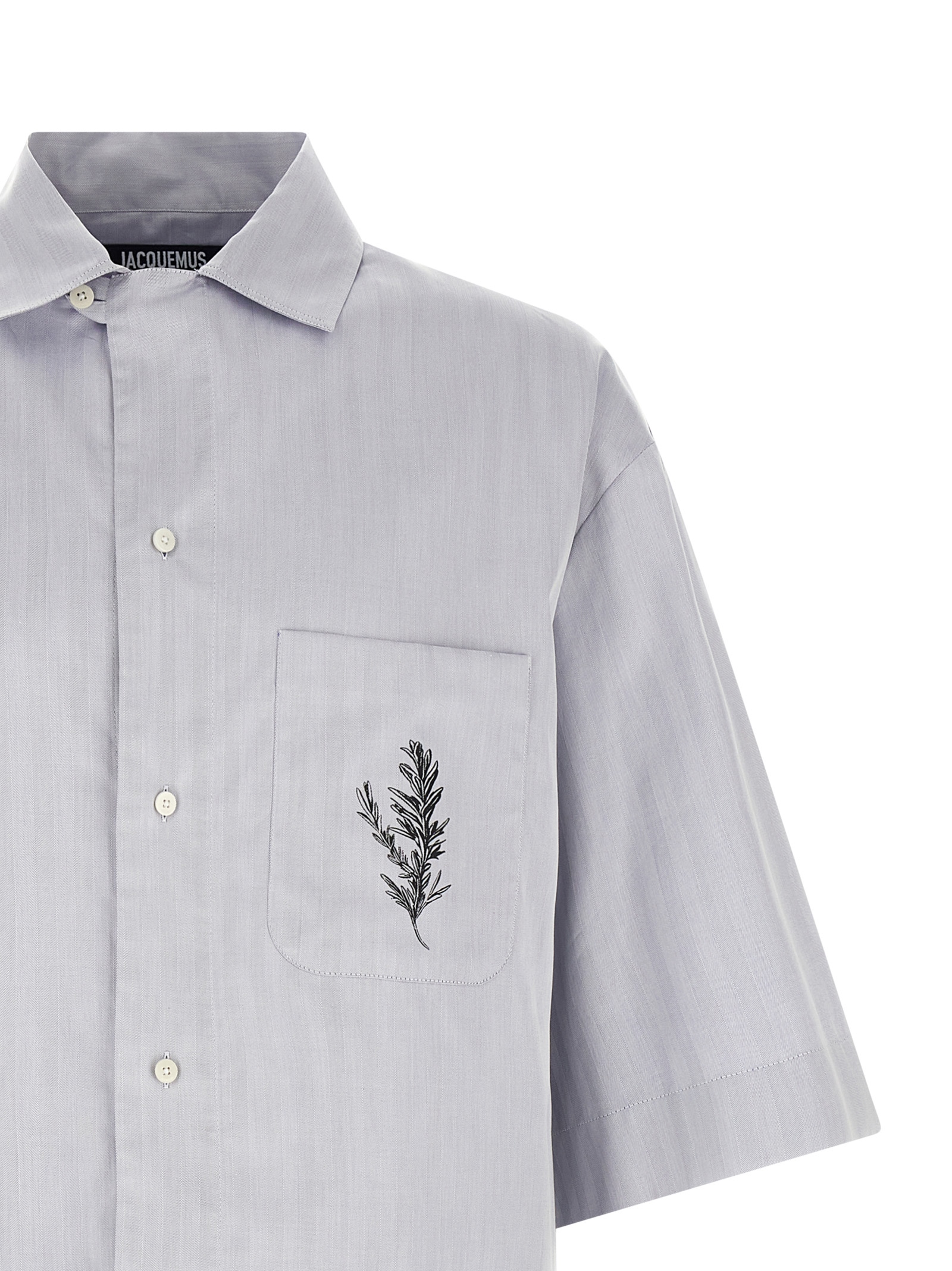 ‘La Chemise Gardian’ cotton shirt with herringbone weave, pointed collar, front button closure with dropped shoulder buttons, front pocket with ‘Rosemay’ print on the front and back and back logo, rounded hem, ‘J’ loop on the back.