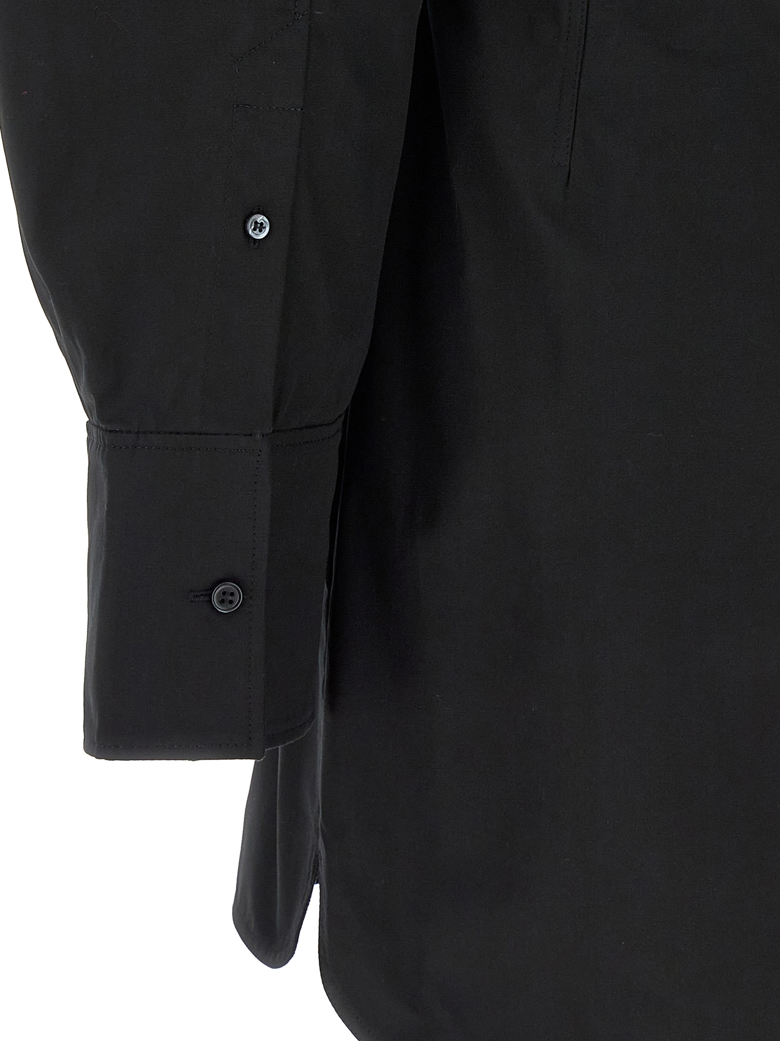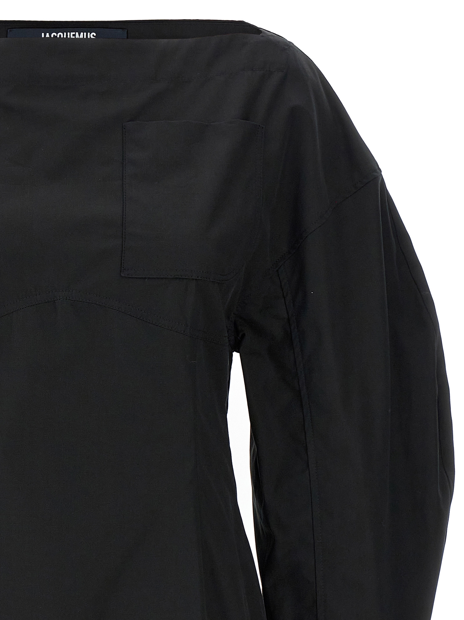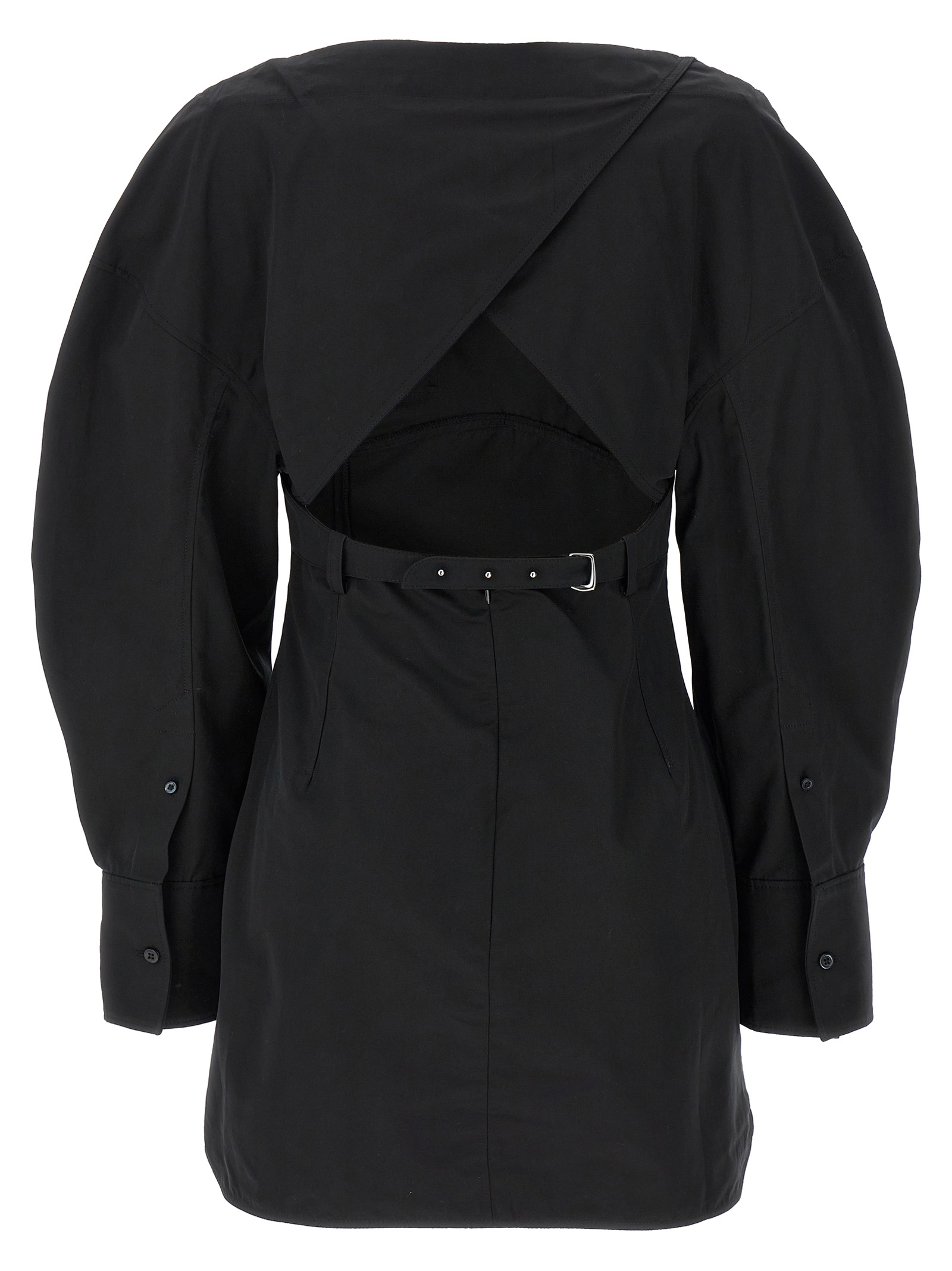 ‘La robe chemise Casaco’ cotton poplin dress with boat neckline, long wide cuffed sleeves, cut-out detail and adjustable strap at the back.