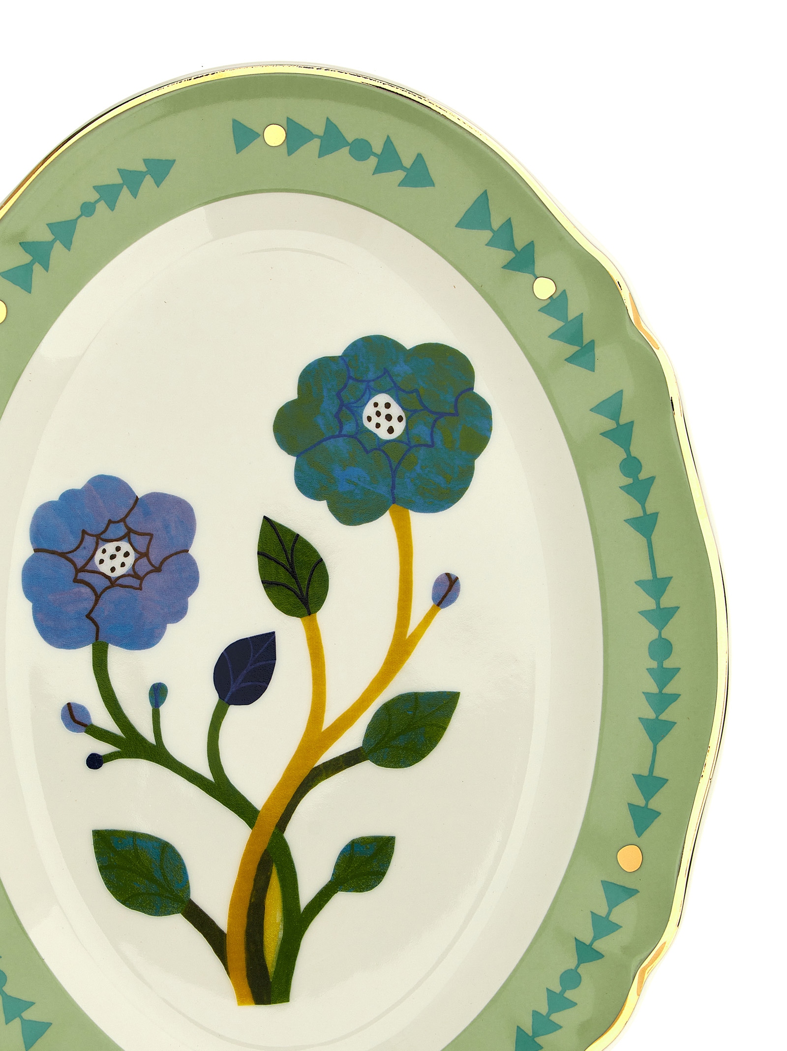 ‘La Tavola Scomposta’ porcelain tray with gold border decals.