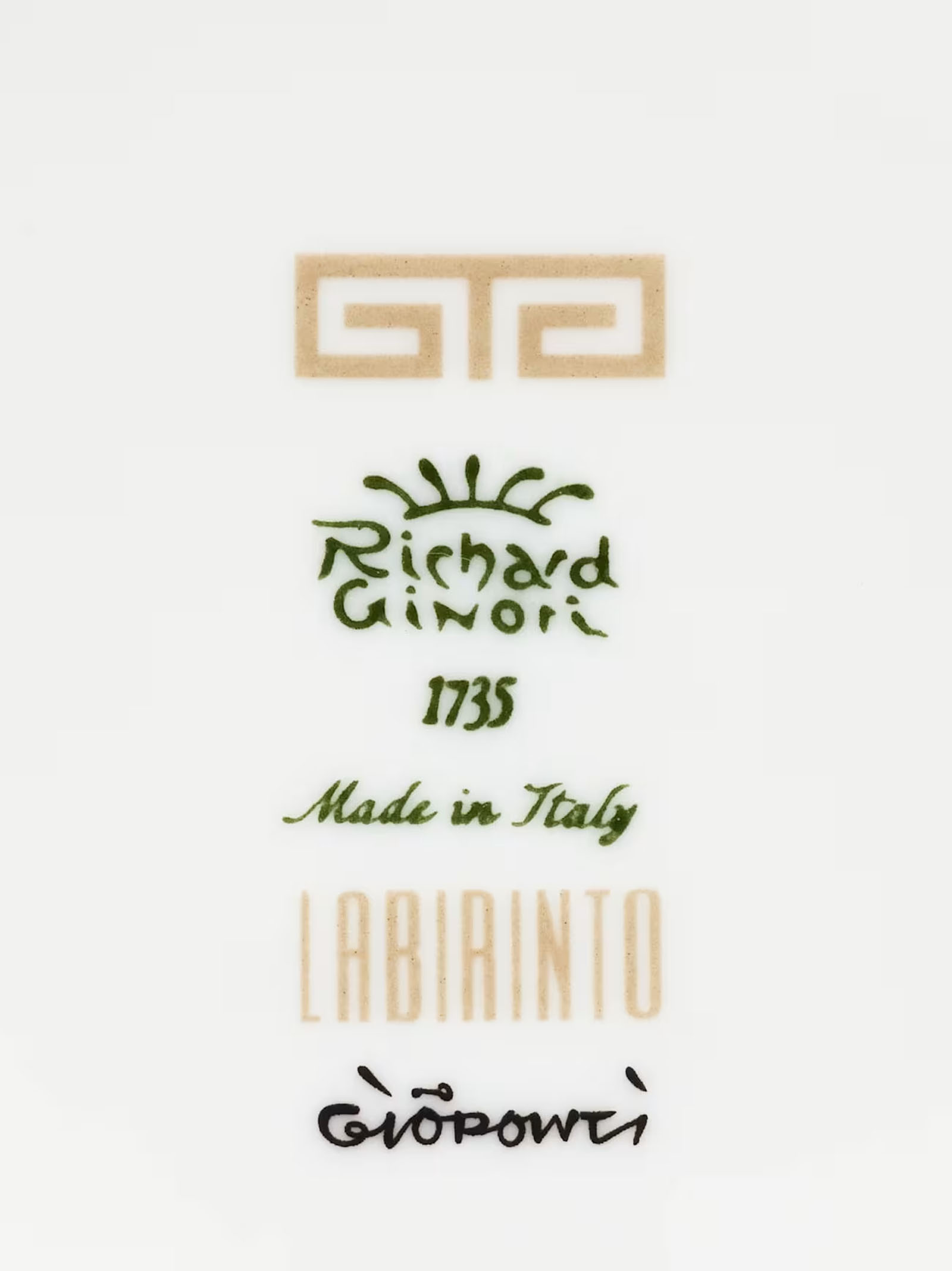 Square porcelain centerpiece with beige Cashmere decoration and gold thread. ‘Labirinto’ collection by Gio Ponti.