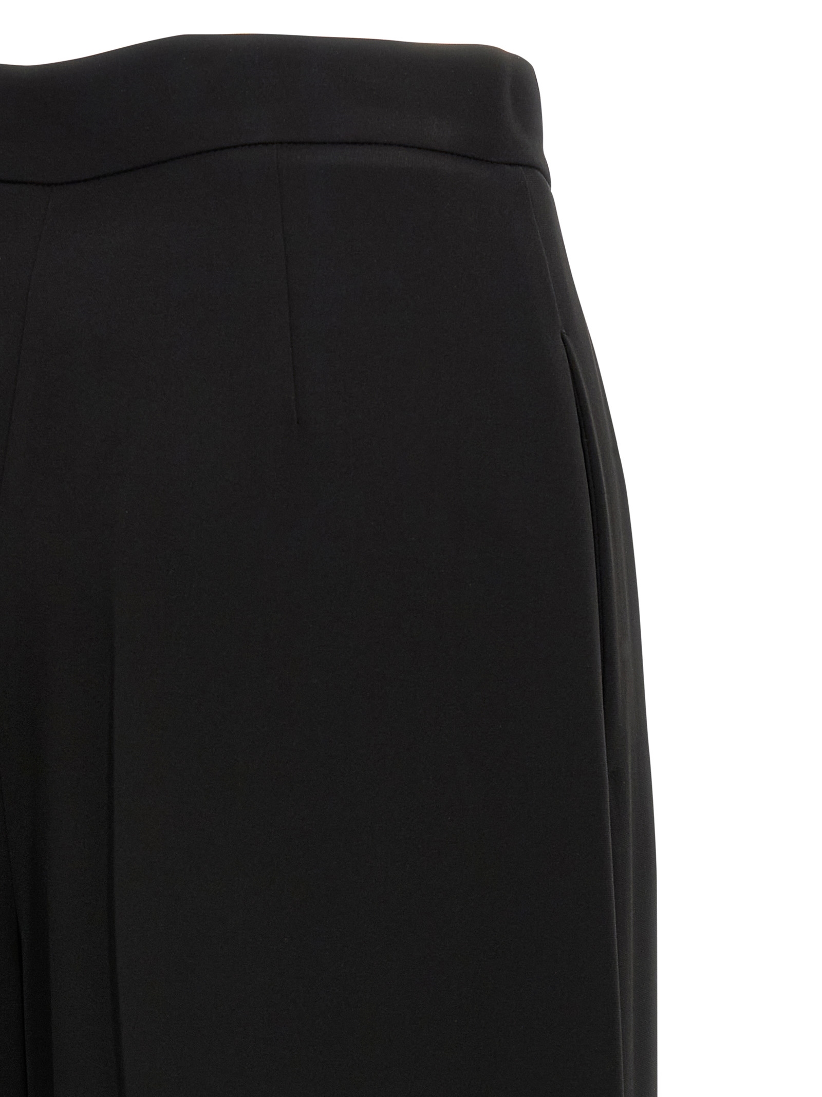 ‘Laccato’ palazzo pants with high waist, front front pleats, zip and hook closure, pockets.