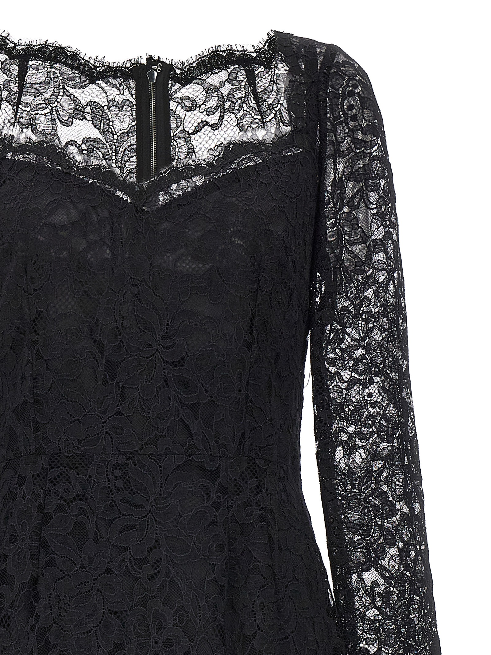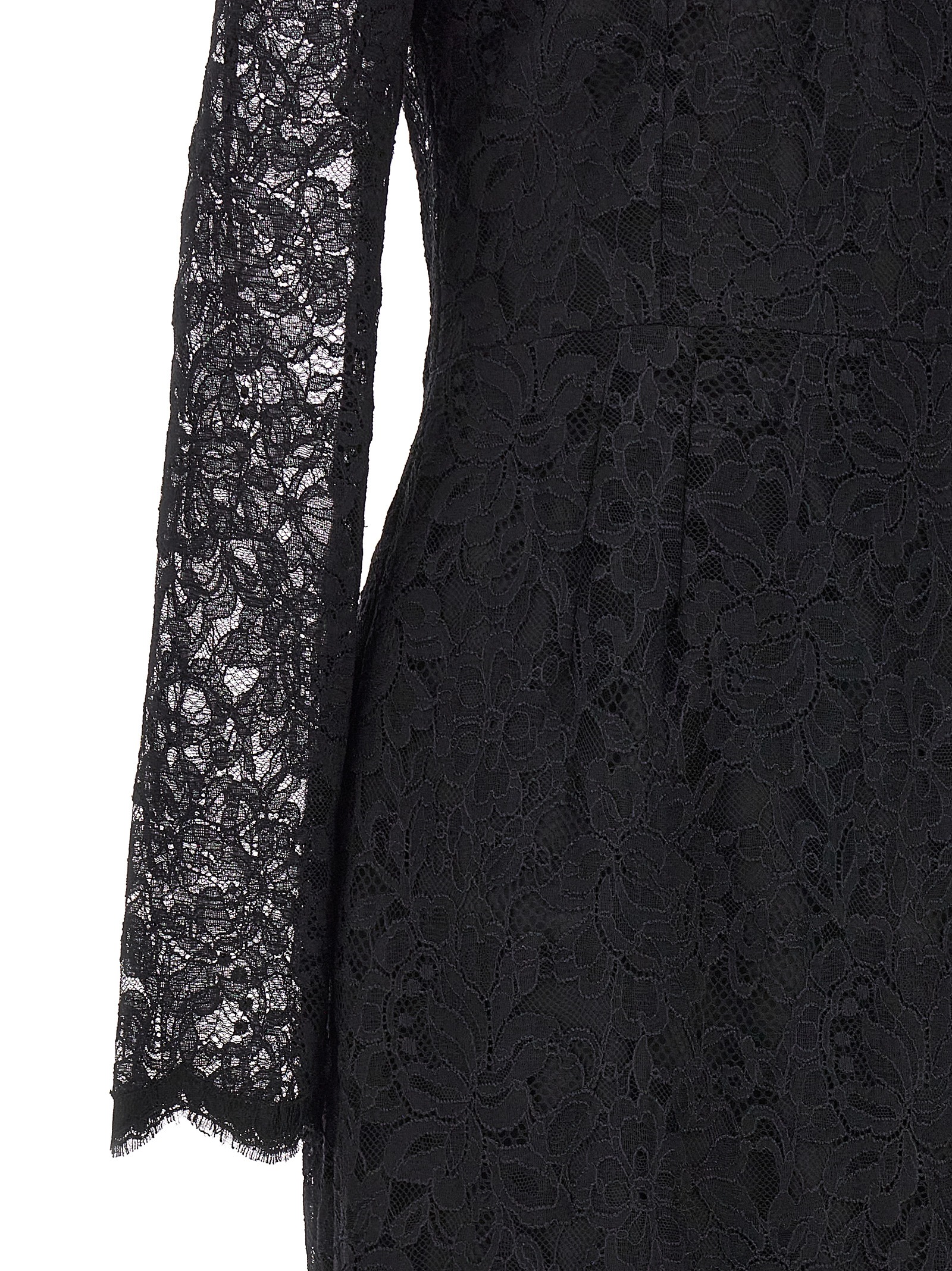Lace midi dress in stretch fabric with longsleeves, crew neck, zip closure.