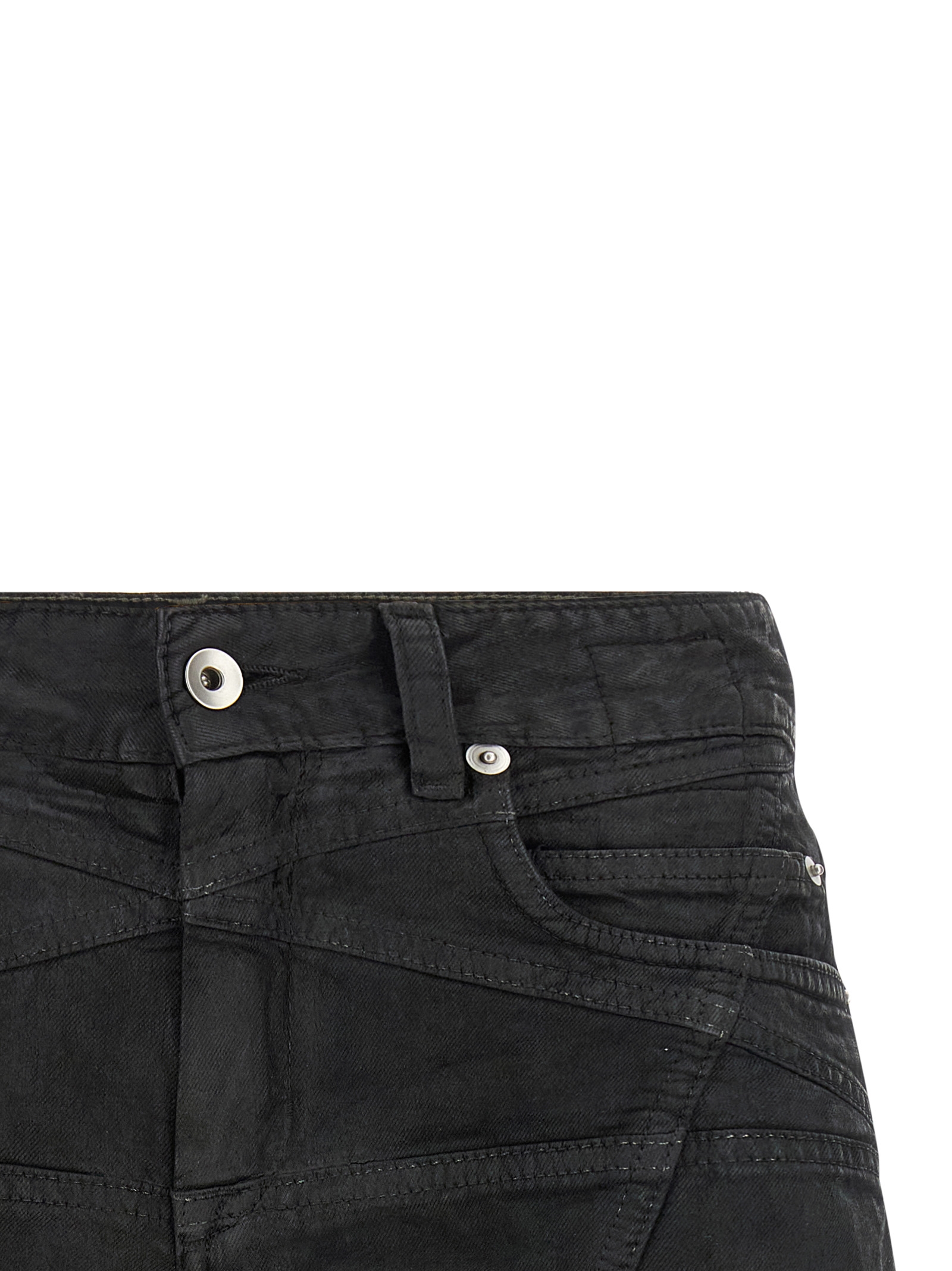 ‘Lana Cut Offs’ shorts in used-effect garment-dyed cotton denim, front zip and button closure, five pockets, raw cut hem, side slits.