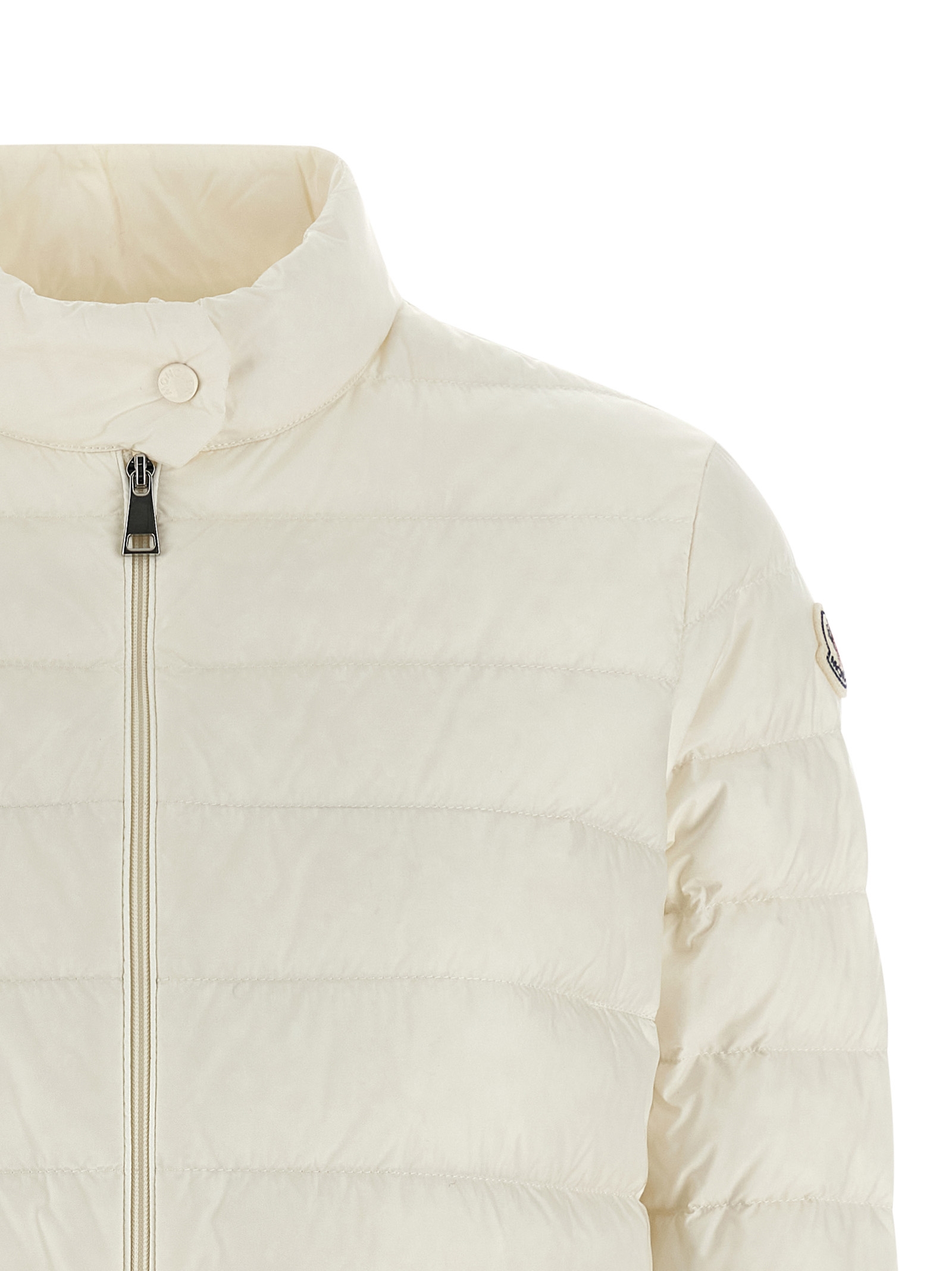 ‘Lans’ saison quilted goose down jacket with goose down padding, standing collar, front zip closure, pockets, long sleeves with elastic cuffs, felt logo patch, elastic at the hem.