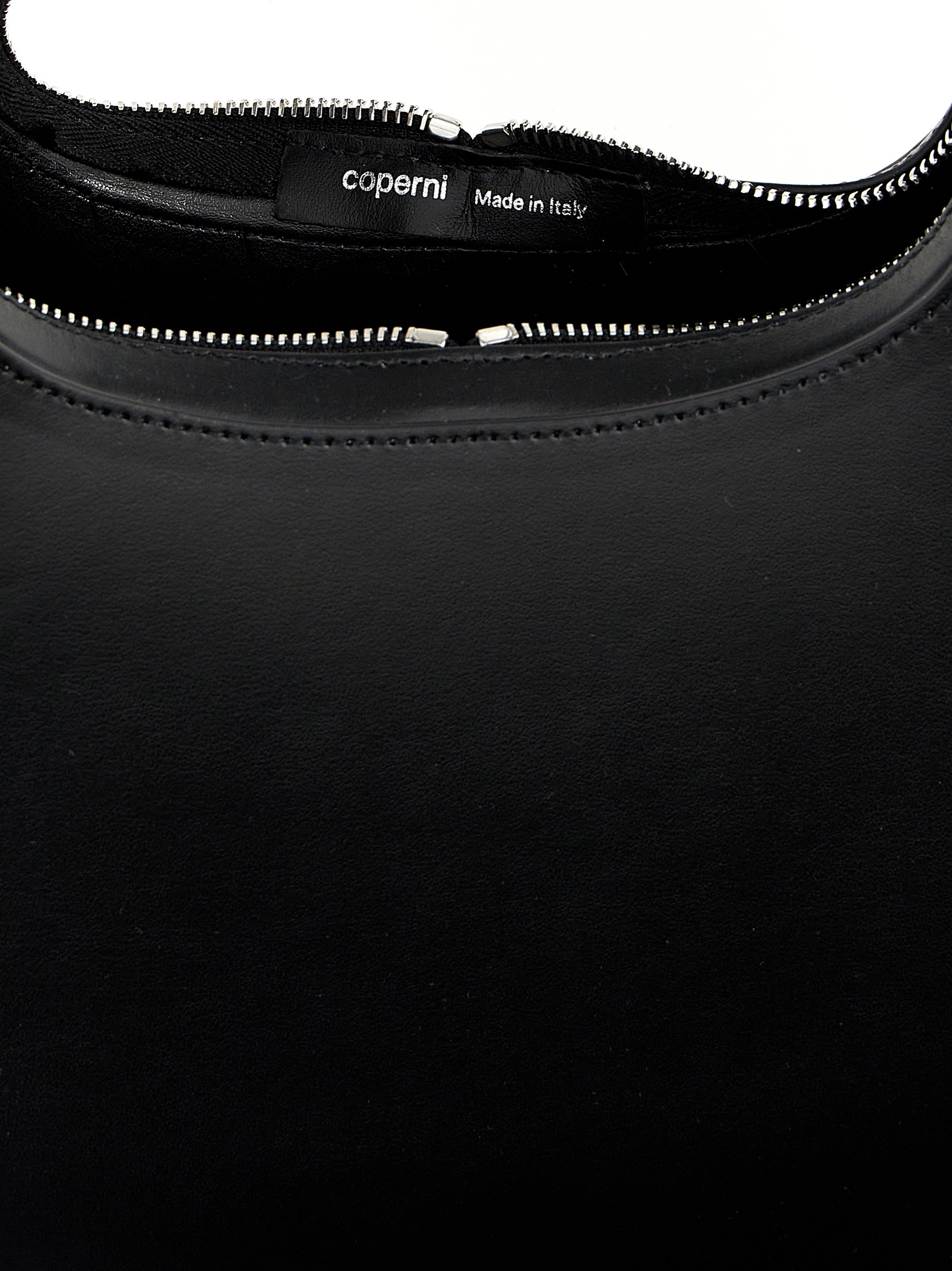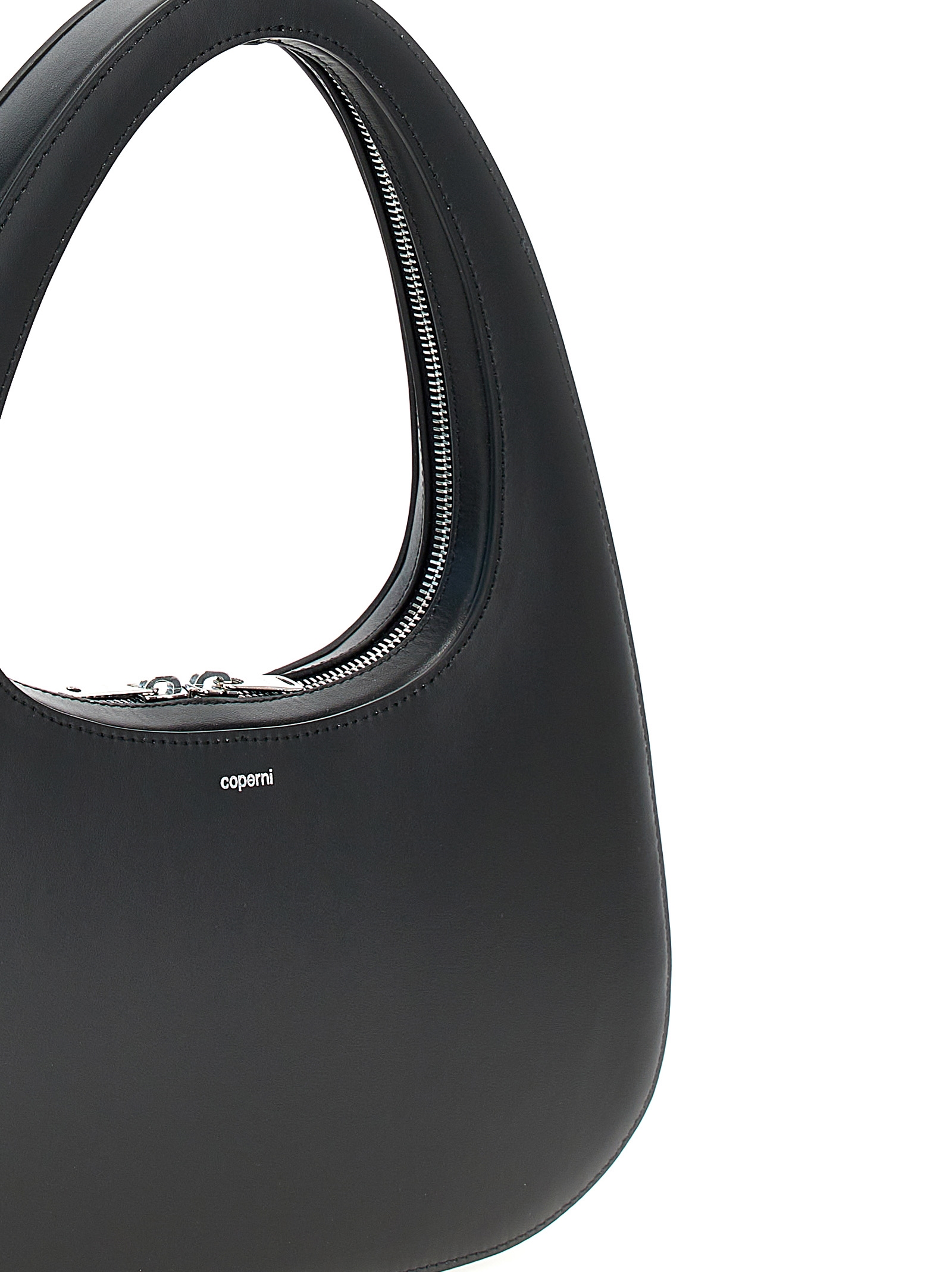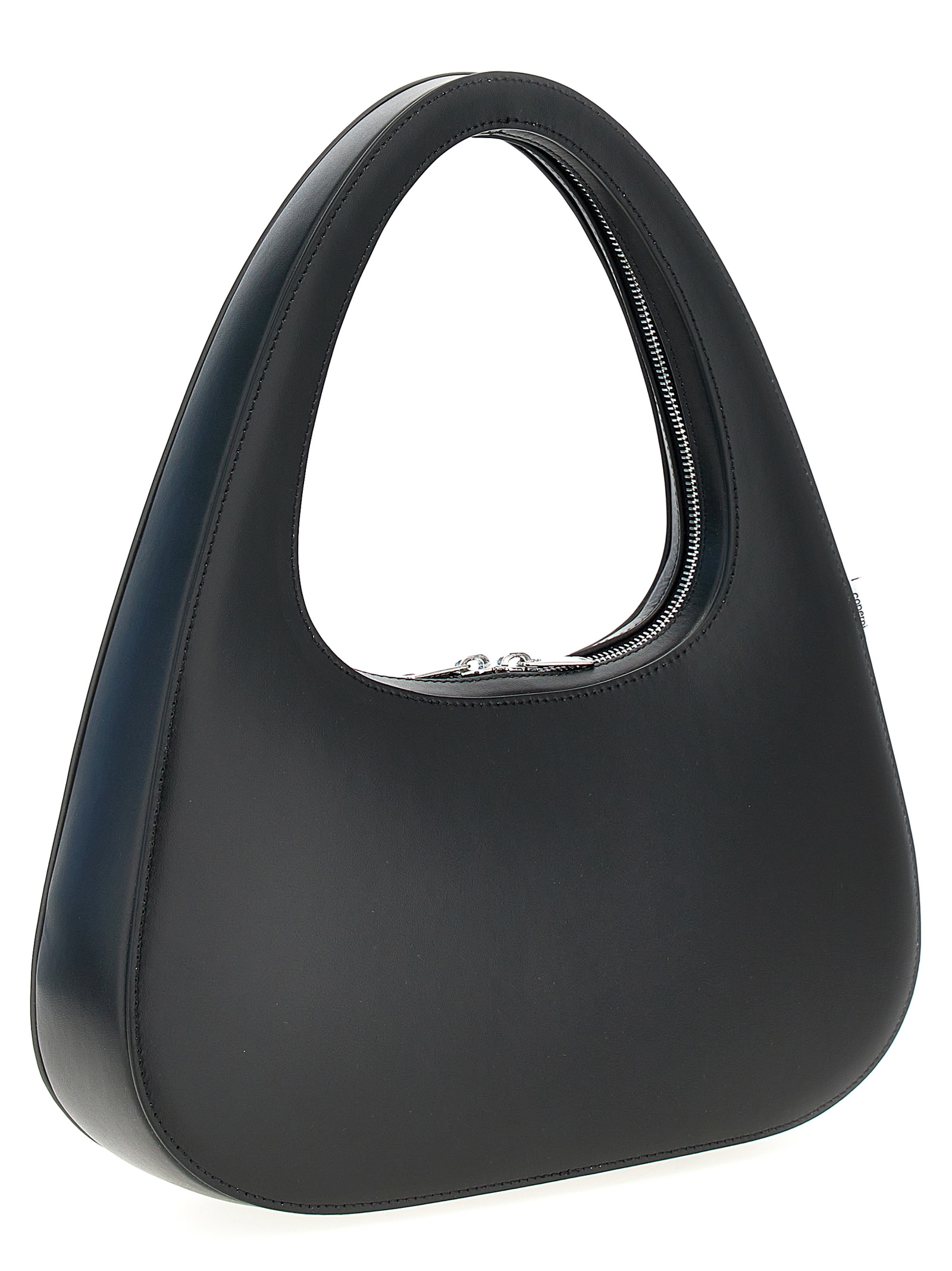 ‘Large Swipe’ leather handbag with zip closure, front embossed logo.mbossed logo.