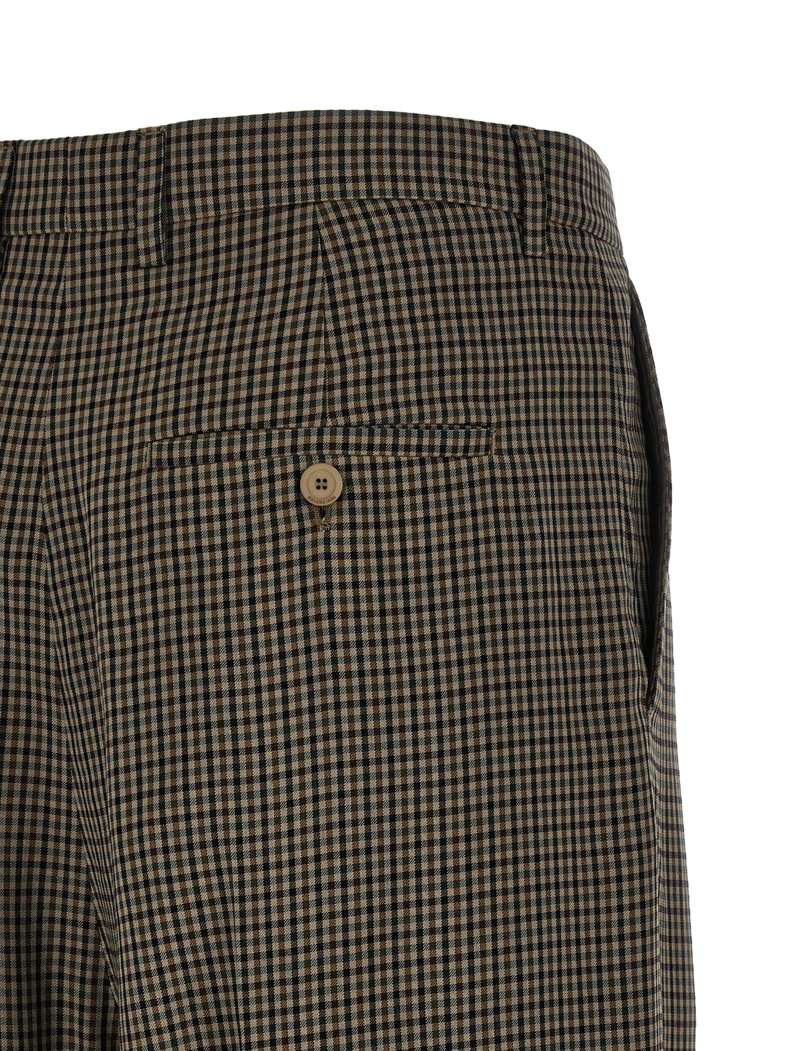 ‘Large Tailored’ plaid fluid lyocell pants, medium waist, wide and straight leg, stretched pleat, zip, hook and front button closure, pockets.