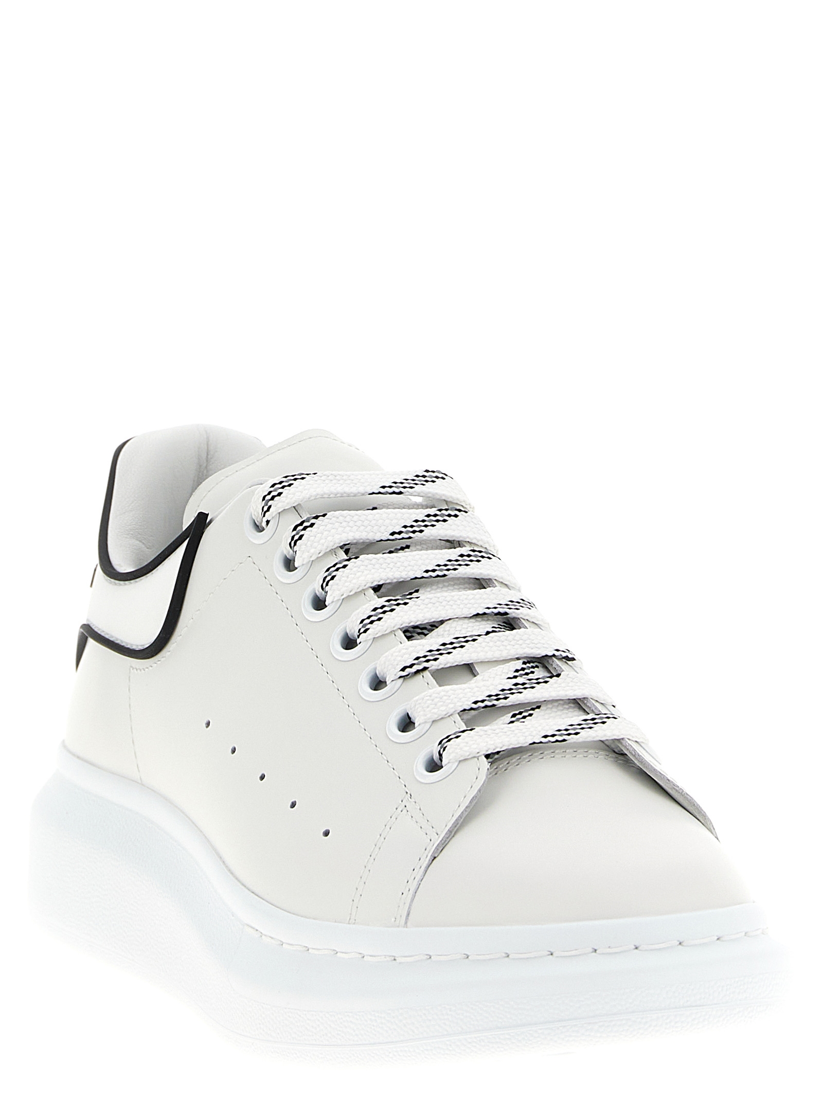‘Larry’ leather sneakers with lace-up closure, contrast piping heel tab and embossed logo, oversized rubber sole.