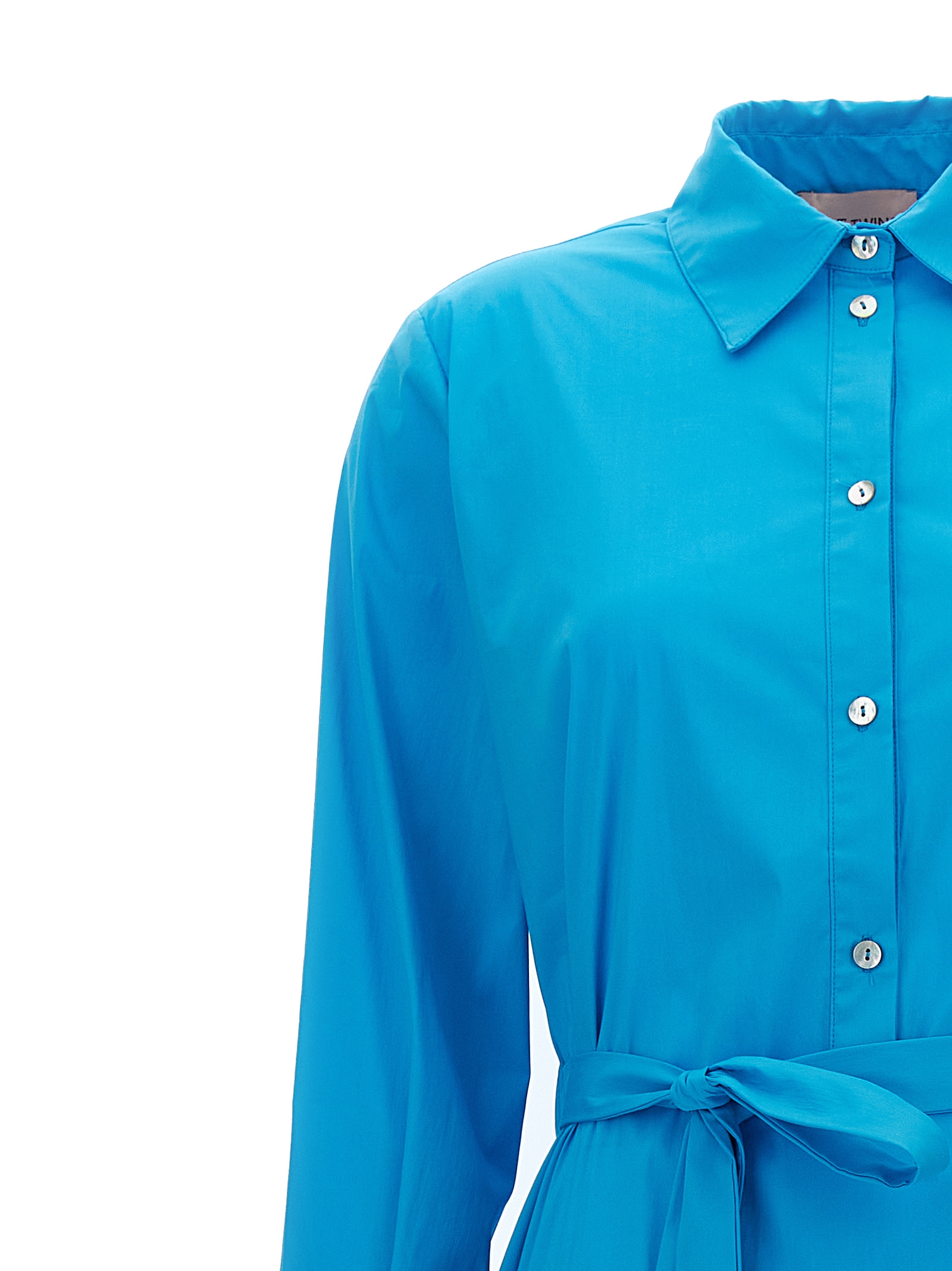 Long ‘Laura’ shirt dress in cotton blend, button closure, long sleeves with cuff, removable waist belt.