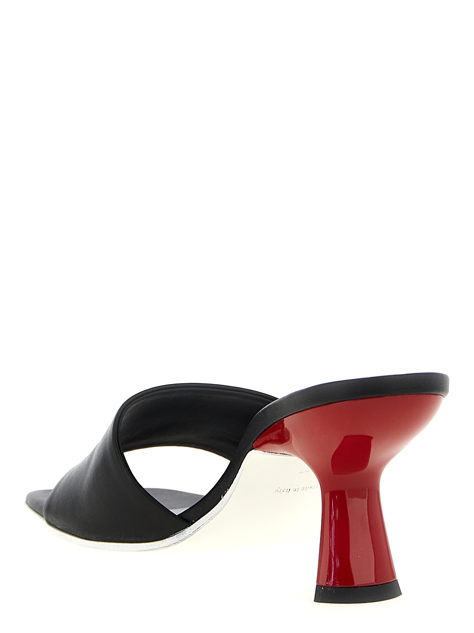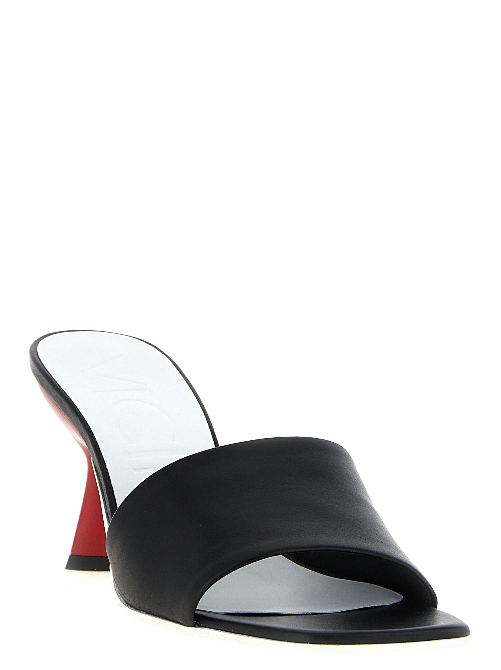 ‘Lavenue’ leather sabots with square toe, front band, contrast spool heel, leather sole.