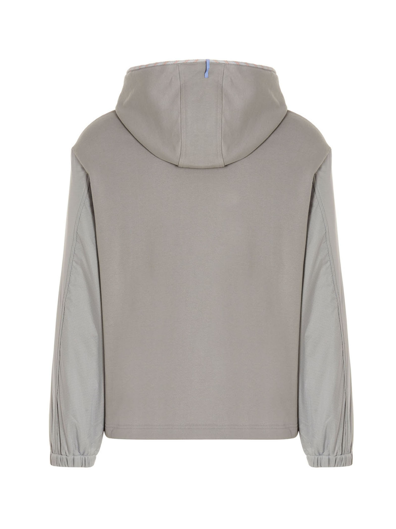 ‘Layered’ capsule Breathe three-layer cotton capsule hoodie with a front insert and technical fabric sleeves, a front print, a drawstring at the waist and cuffs. Featuring a hood with a drawstring and a logo patch on the sleeve. TAG NFC CODE