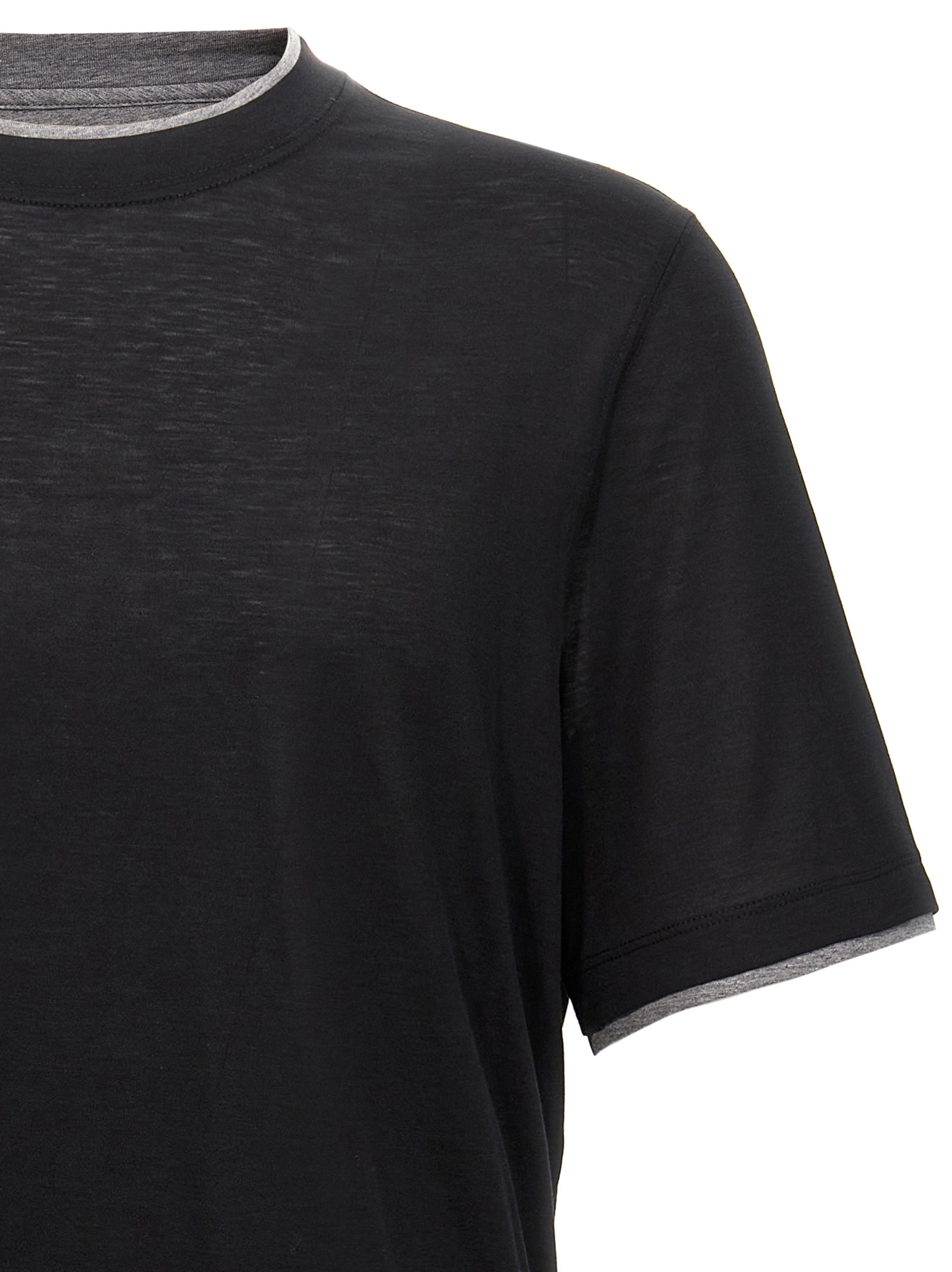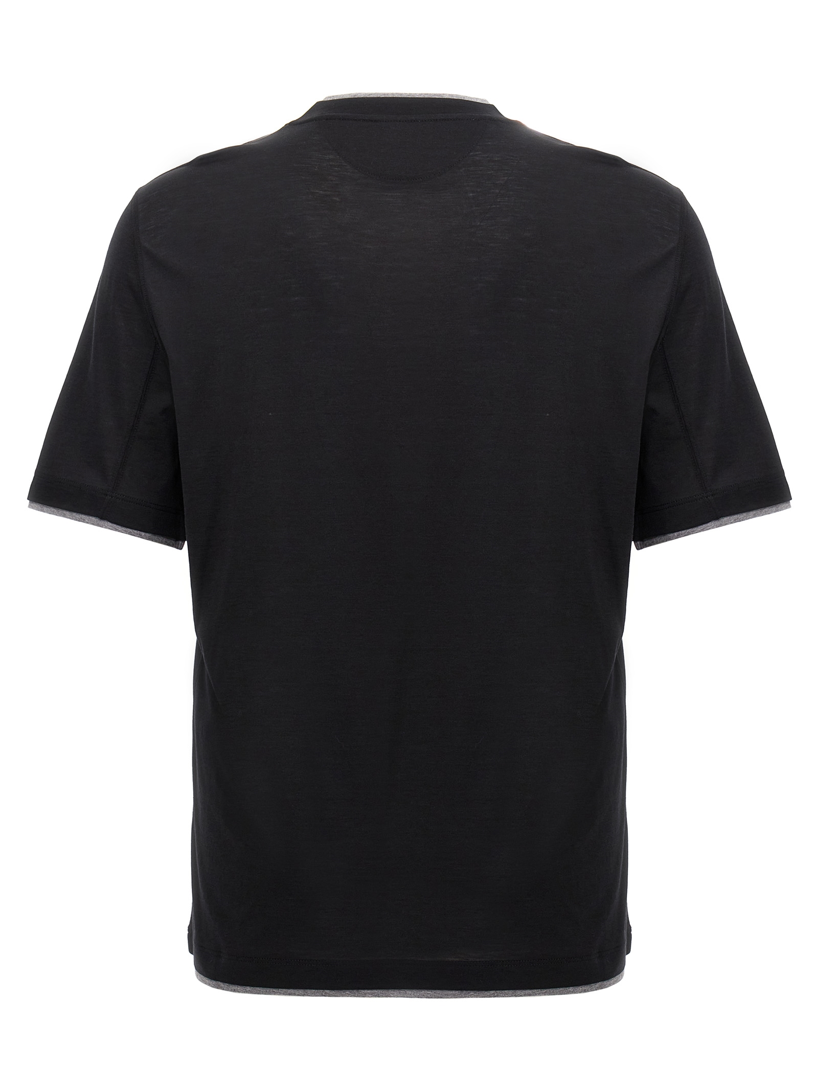 T-shirt in silk and cotton, with layered details, crewneck, short sleeves.