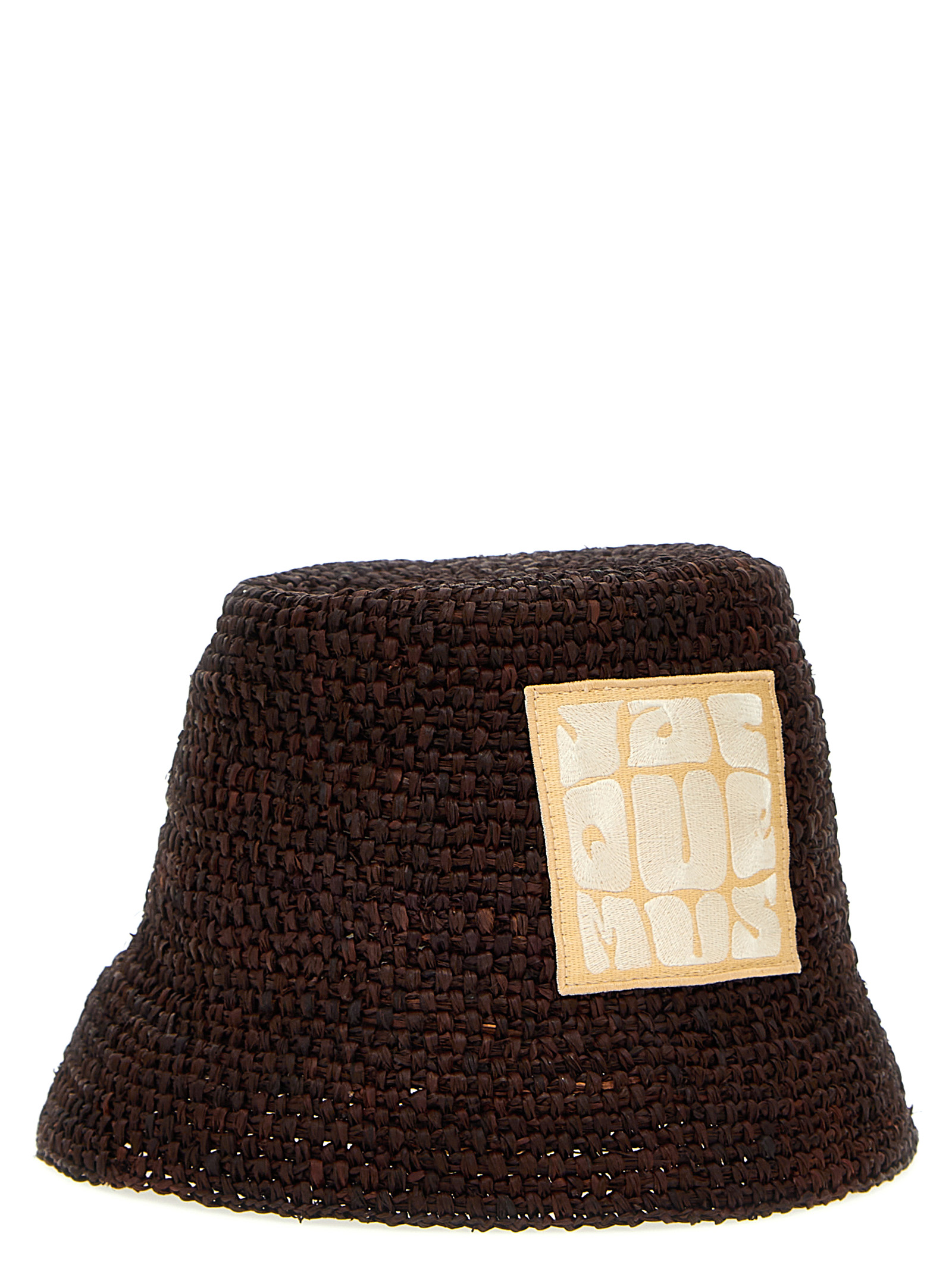 ‘Le Bob Ficiu’ raffia bucket hat with a front logo patch.