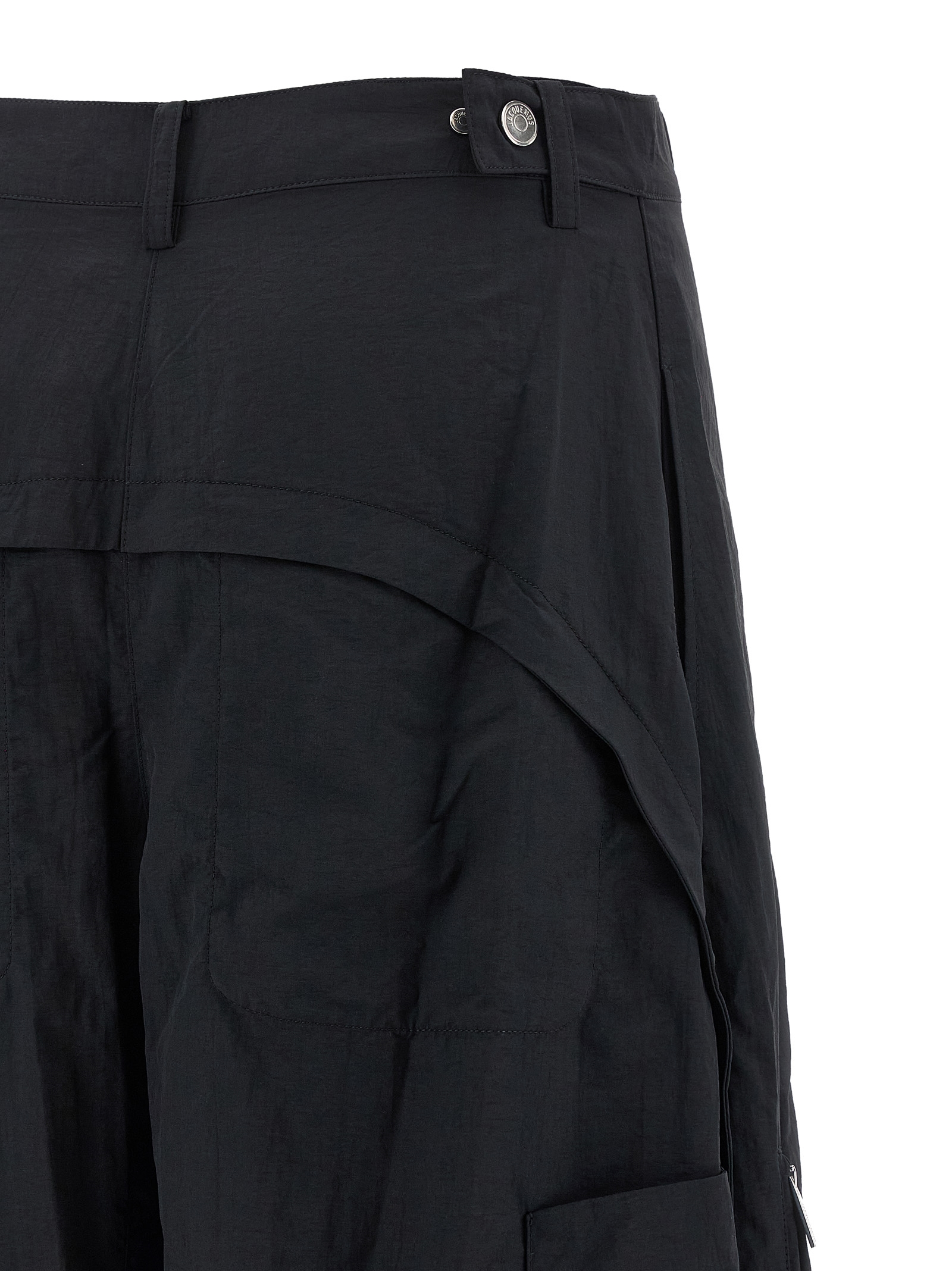 ‘Le Cargo Ovalo’ nylon pants, side pockets, zip and button closure, wide leg, elastic knit cuffs on the hem.