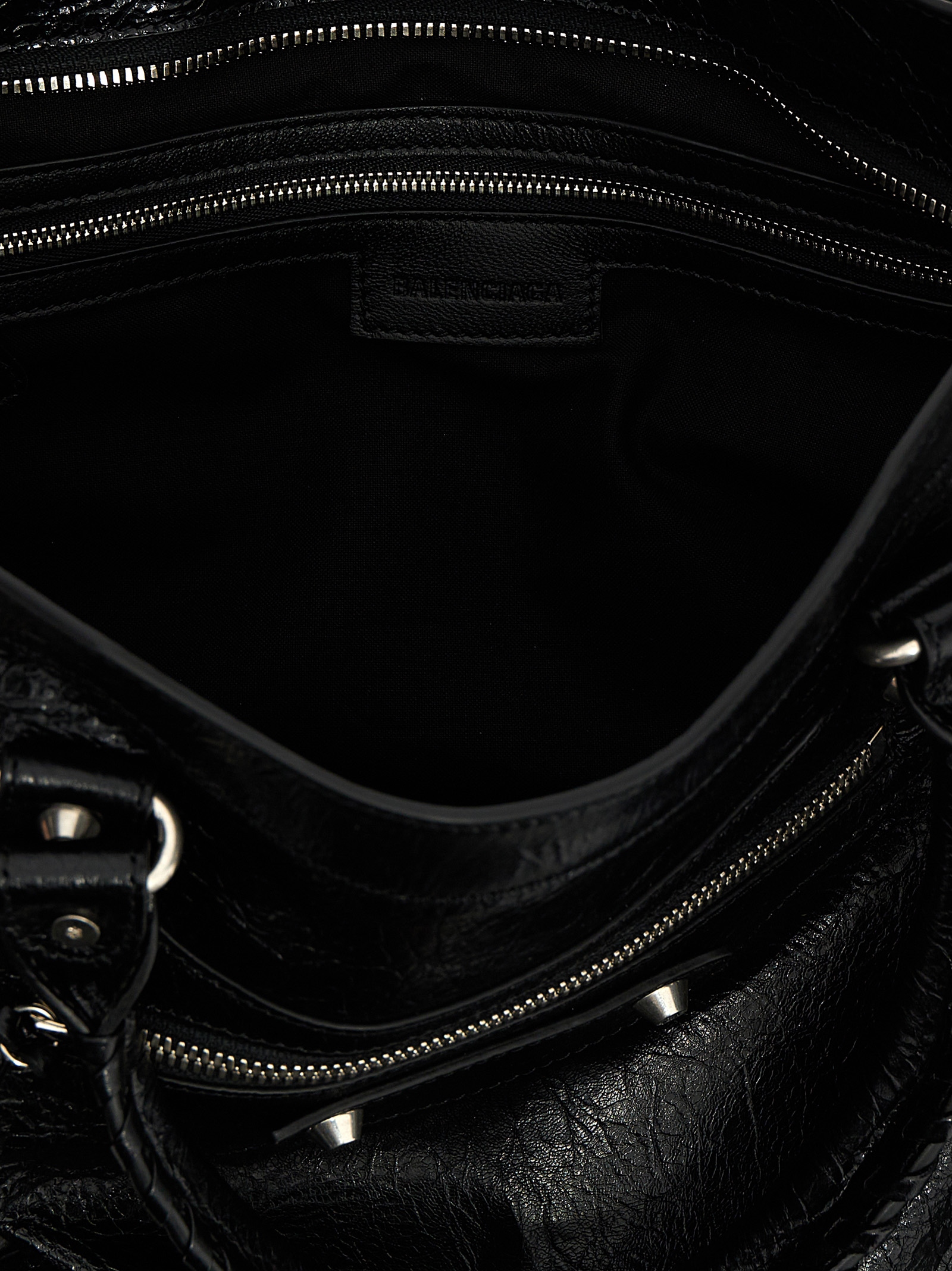 Arena Storico lambskin ‘Le City Bag M’ handbag, double fixed handles, top zipper closure, silver-finish stud applique, front zipper pocket, adjustable and removable shoulder strap.