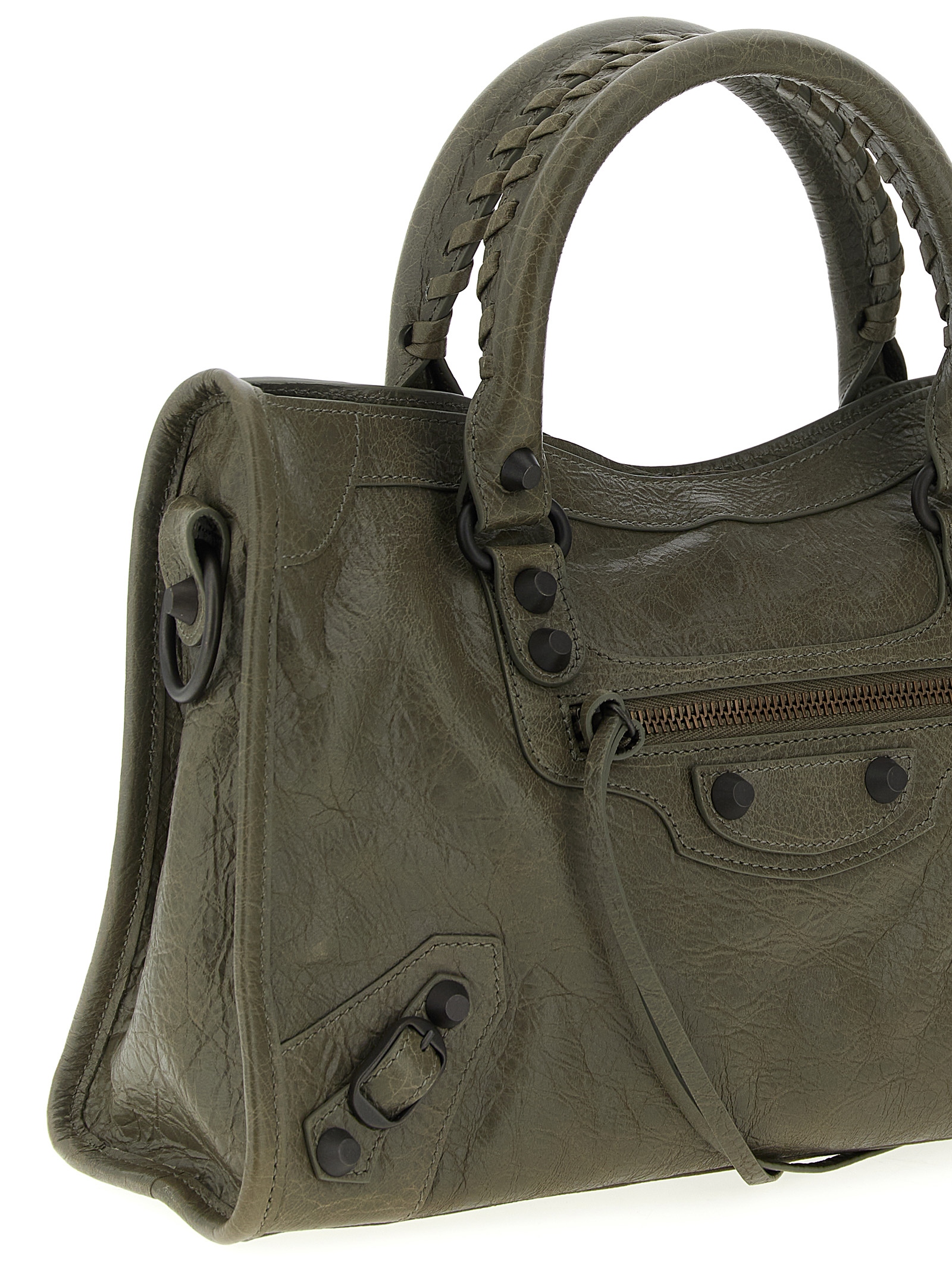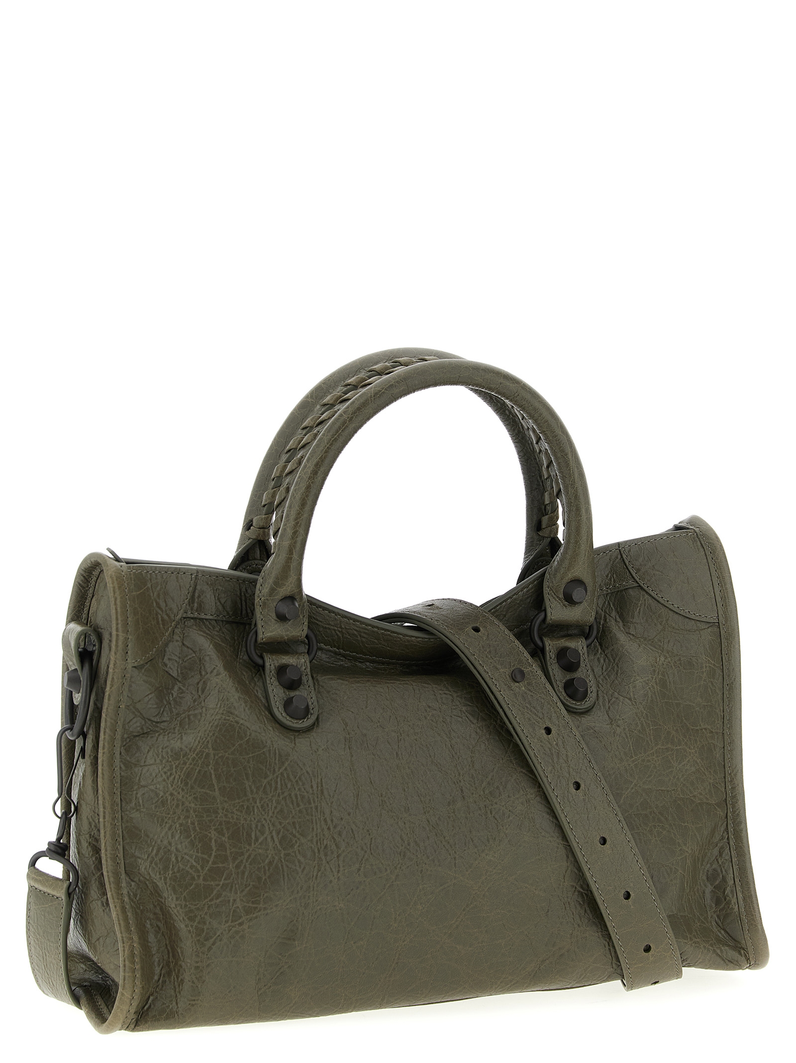 Arena Storico ‘Le City Bag S’ lambskin handbag with double fixed handle, top zip closure, brass finish studs, front zip pocket, adjustable and removable shoulder strap.