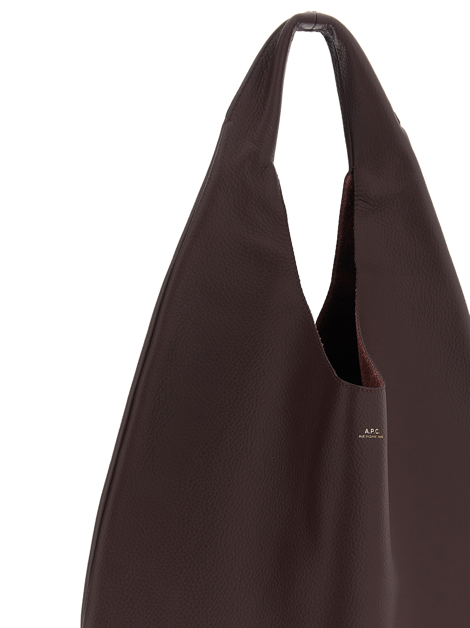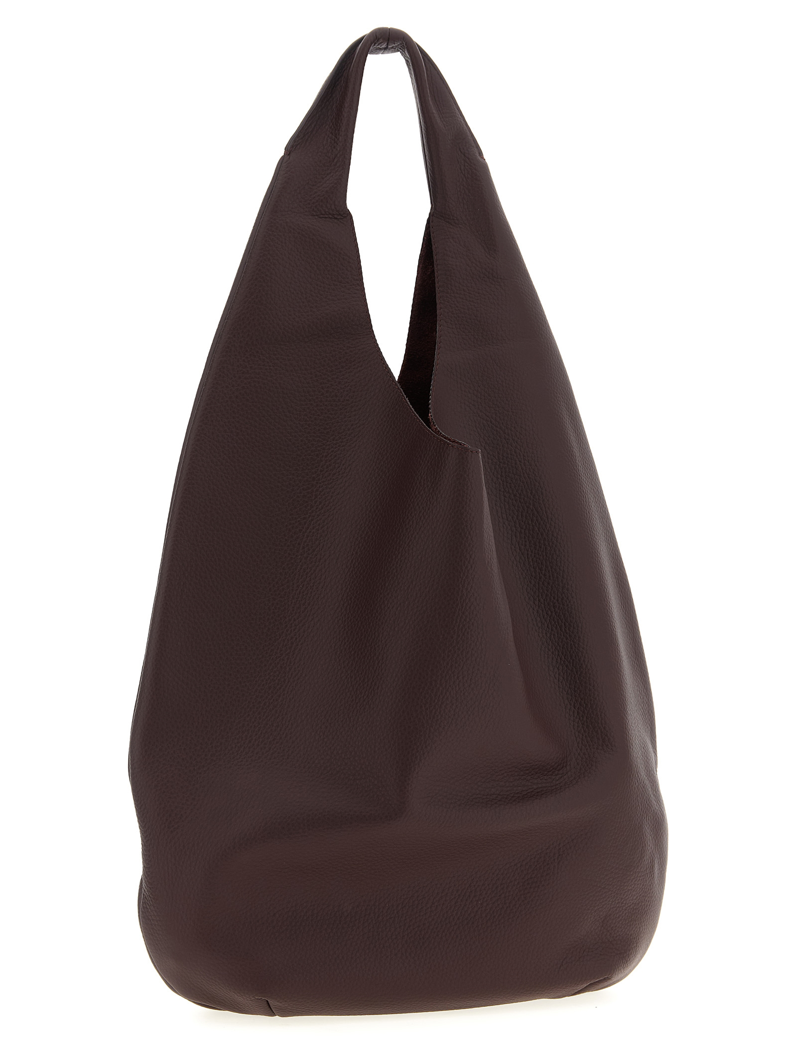 ‘Le Neige’ shoulder bag stitched from a single piece of leather, front embossed logo, single handle.