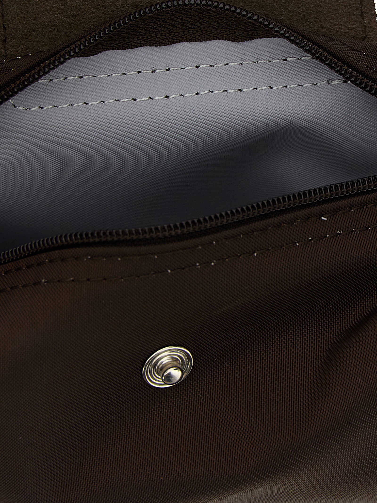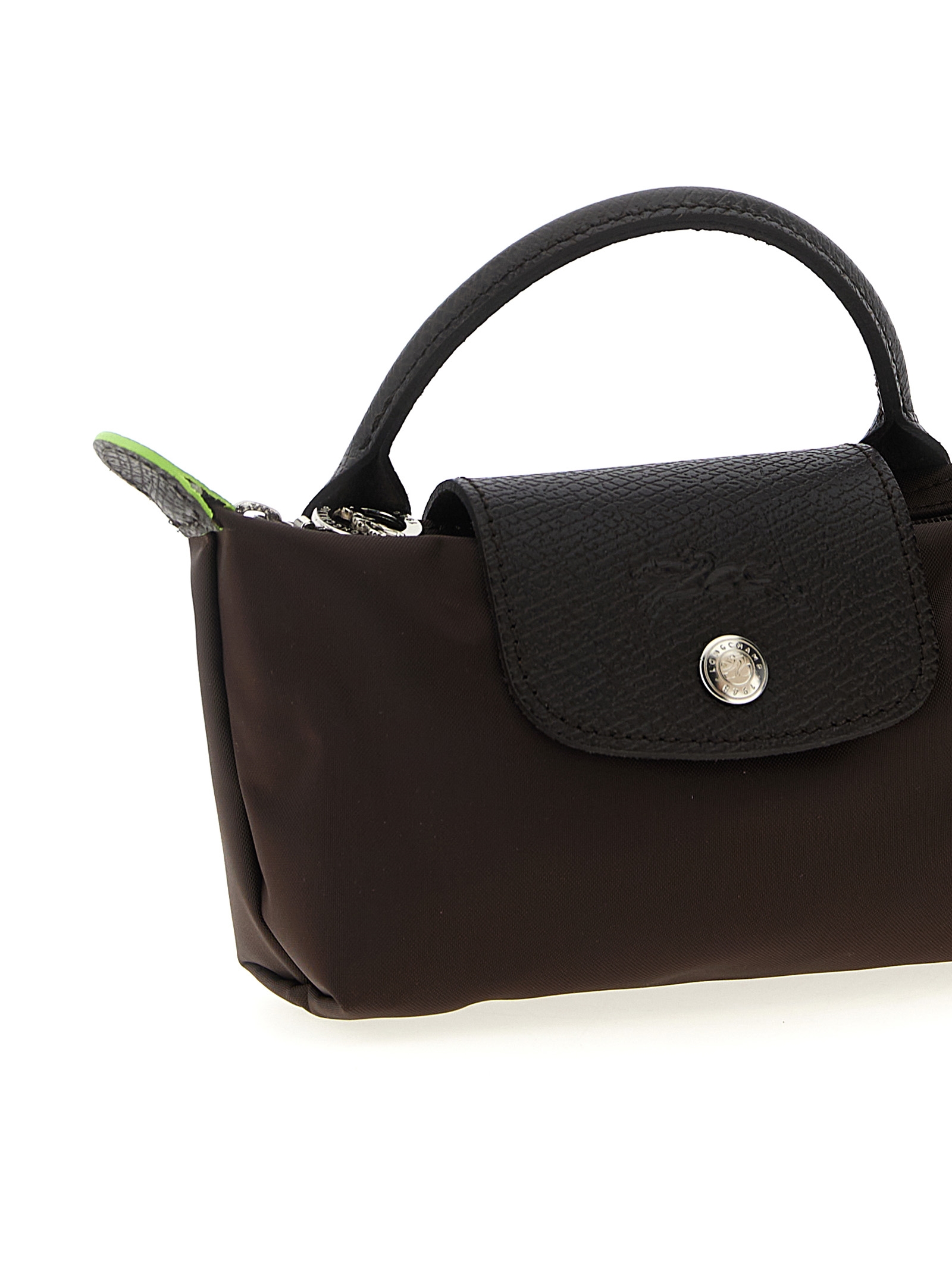 ‘Le Pliage Green’ canvas clutch bag, top zip closure, Russian leather handle, Russian leather flap closure with snap button and embossed logo.